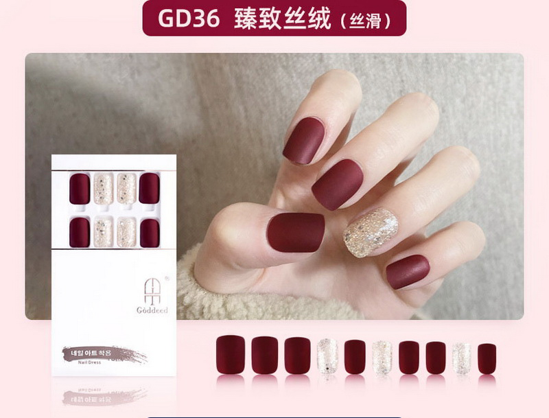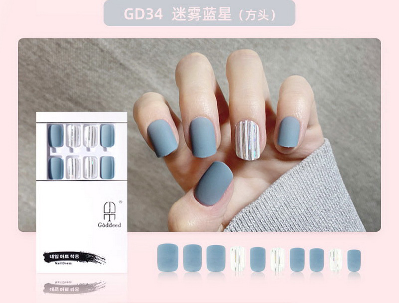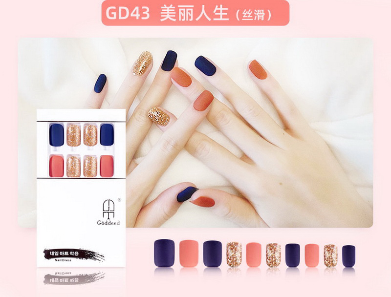韩国GODDEED甲帝氧气穿戴指甲美甲贴女可重复环保30片磨砂