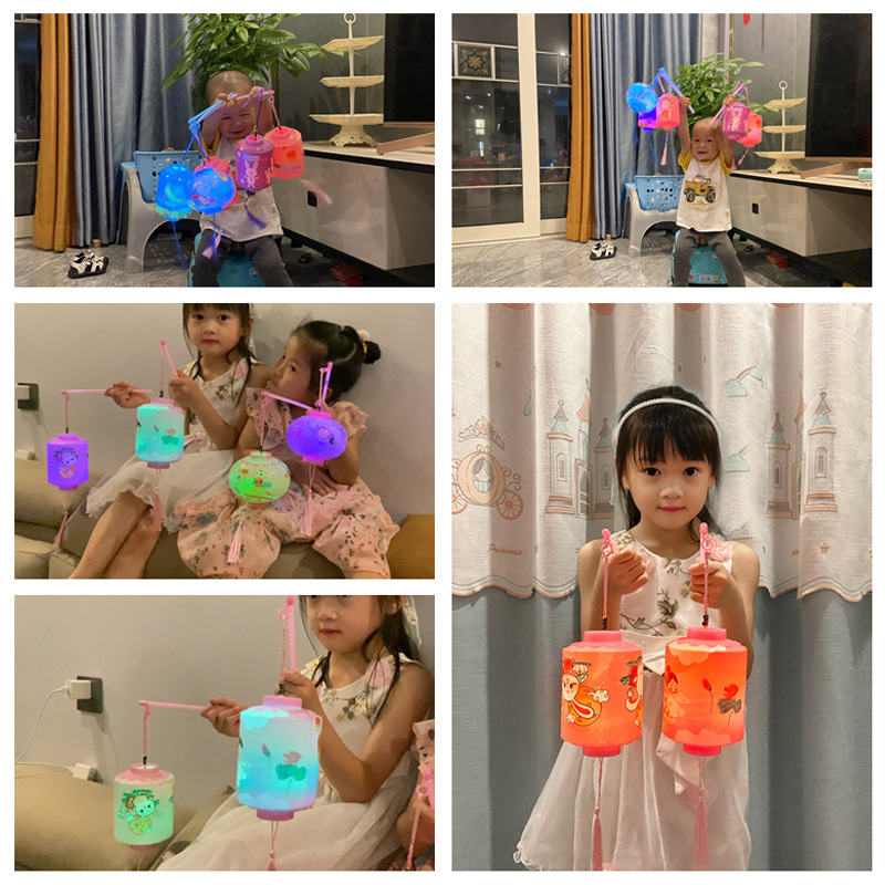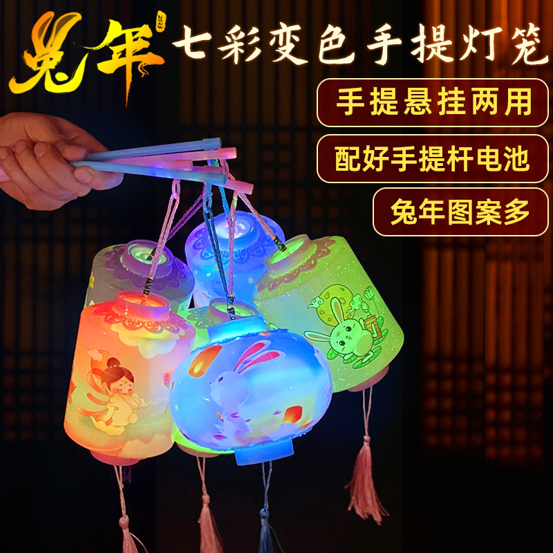新年LED七彩手提灯笼儿童卡通兔子灯笼创意玩具元宵花灯厂家批发