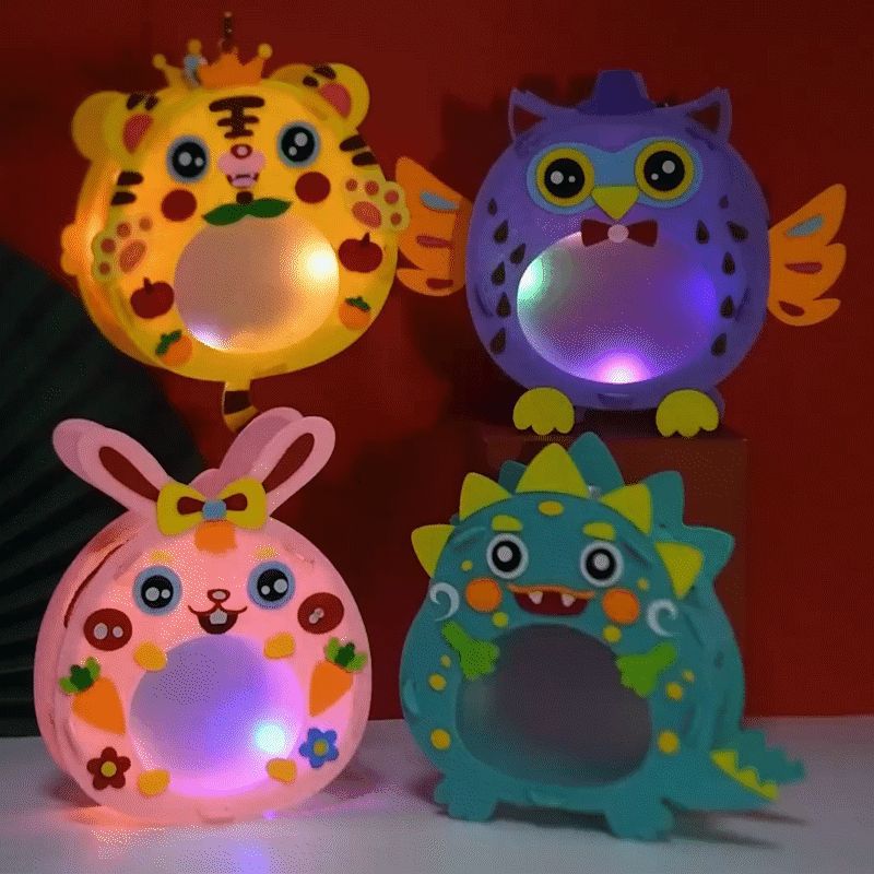 DIY卡通中秋节灯笼儿童手提发光灯笼幼儿园手工不织布材料包玩具