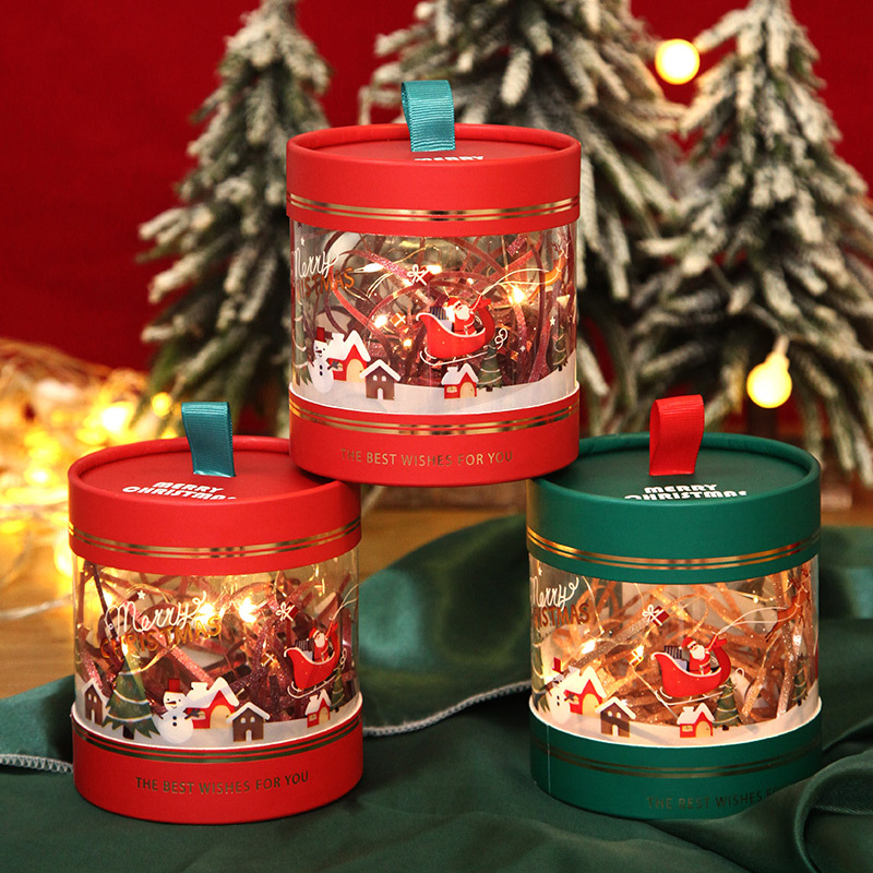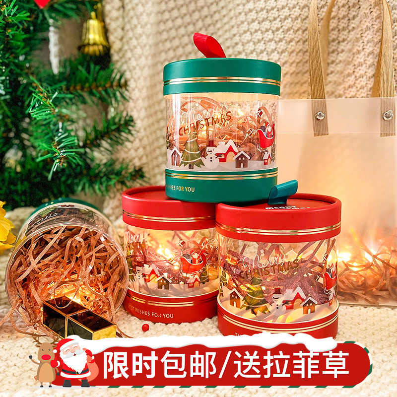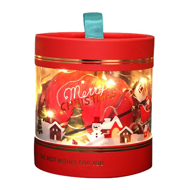 圣诞节苹果的包装盒抱抱桶圆形透明平安果盒礼物盒子礼盒空