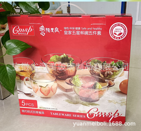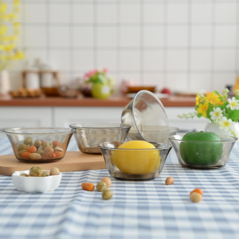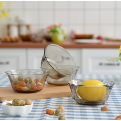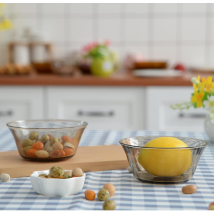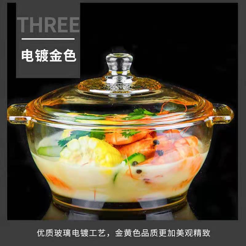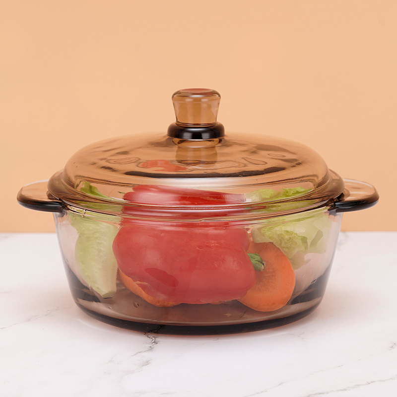 茶色双耳玻璃碗 带盖沙拉碗套装定制礼品泡面碗 批发玻璃水晶煲