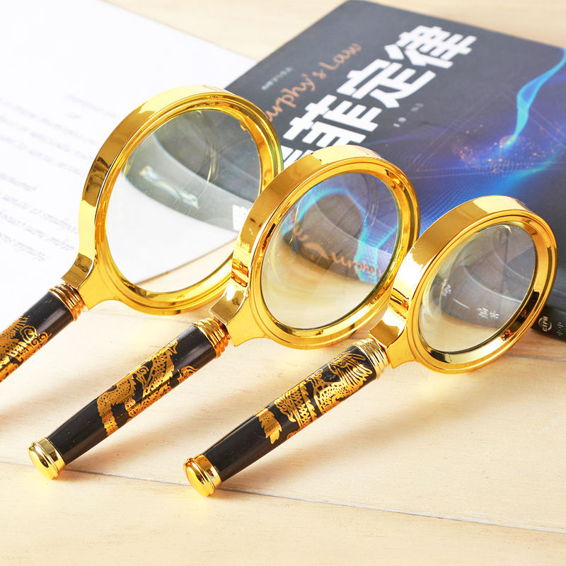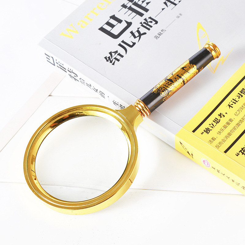 厂家直销手持高倍光学放大镜仿木手柄镀金边扩大镜老年人阅读看报