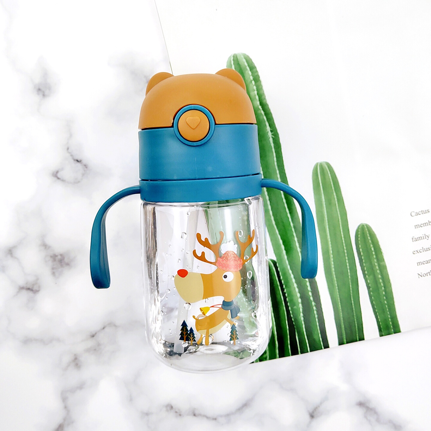塑料儿童水杯宝宝吸管杯防摔被子饮水杯学饮杯防摔带手柄防摔壶