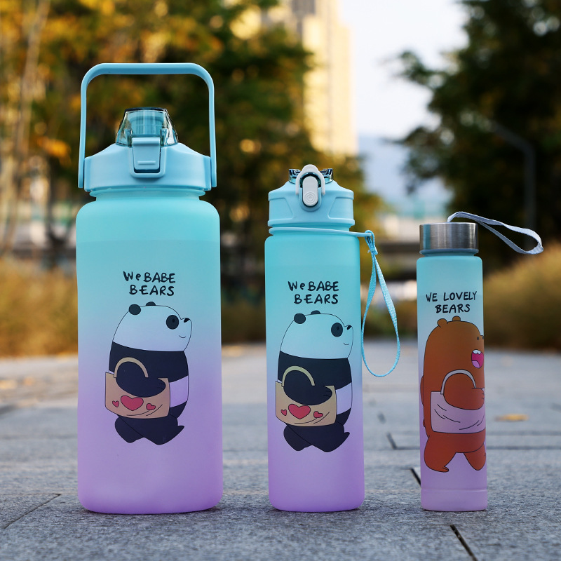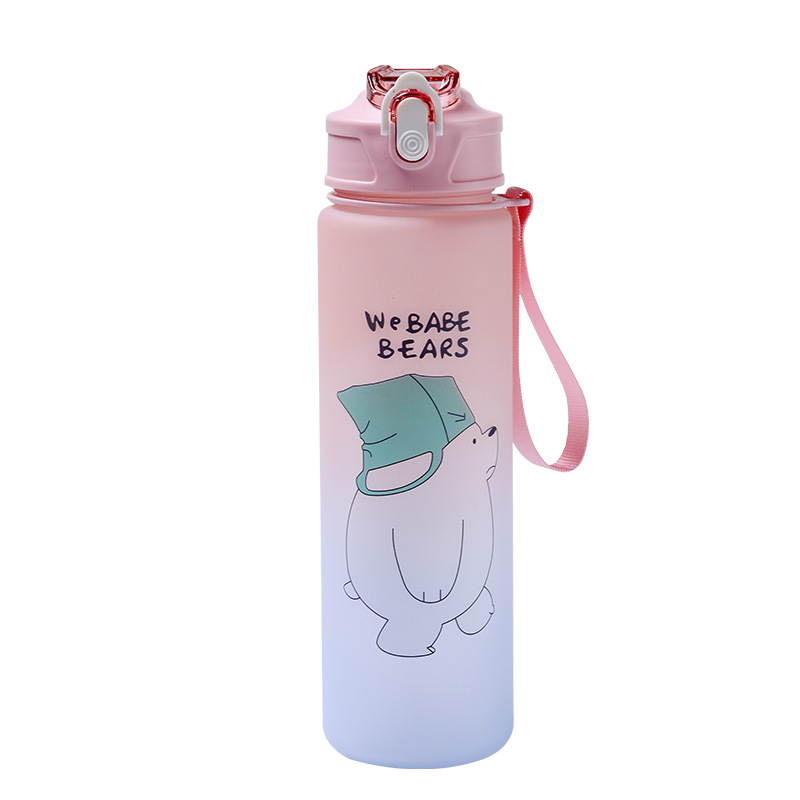 跨境可爱小熊塑料杯卡通大容量户外吸管水壶女生健身运动随手套杯