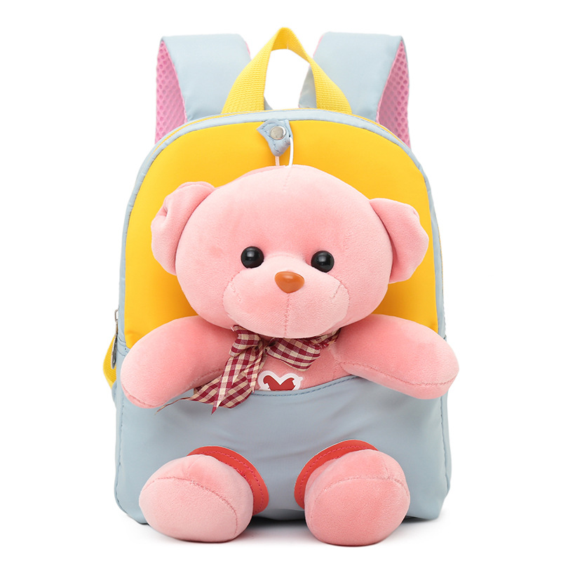 新款卡通可爱小熊毛绒玩偶书包幼儿园双肩包撞色尼龙小学书包批发