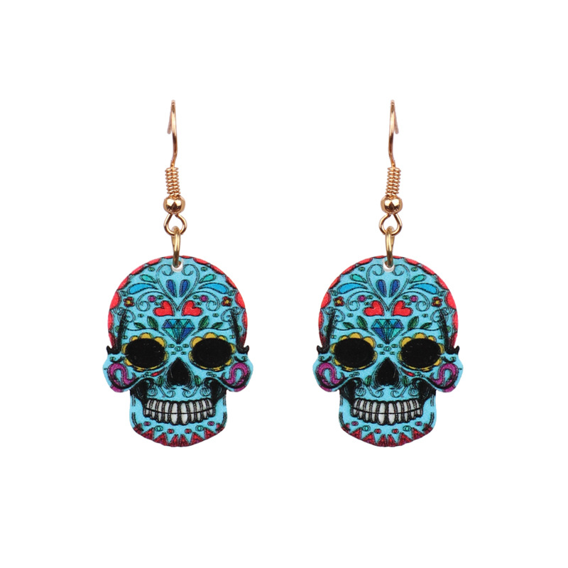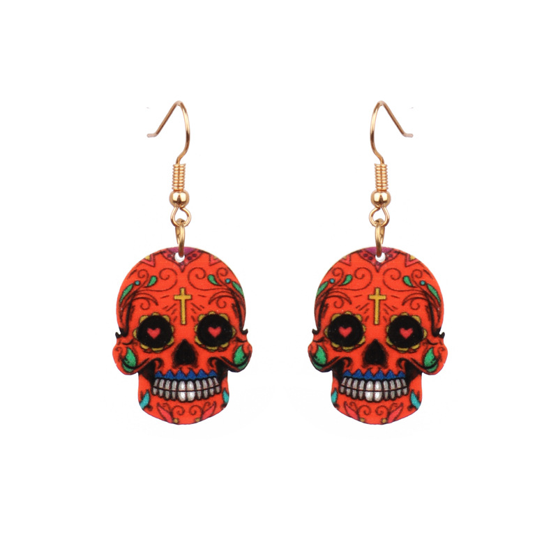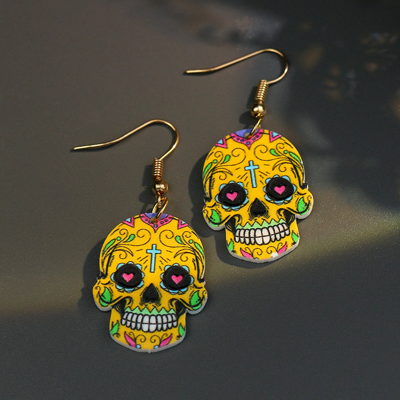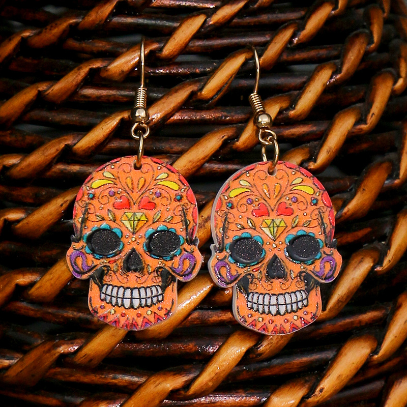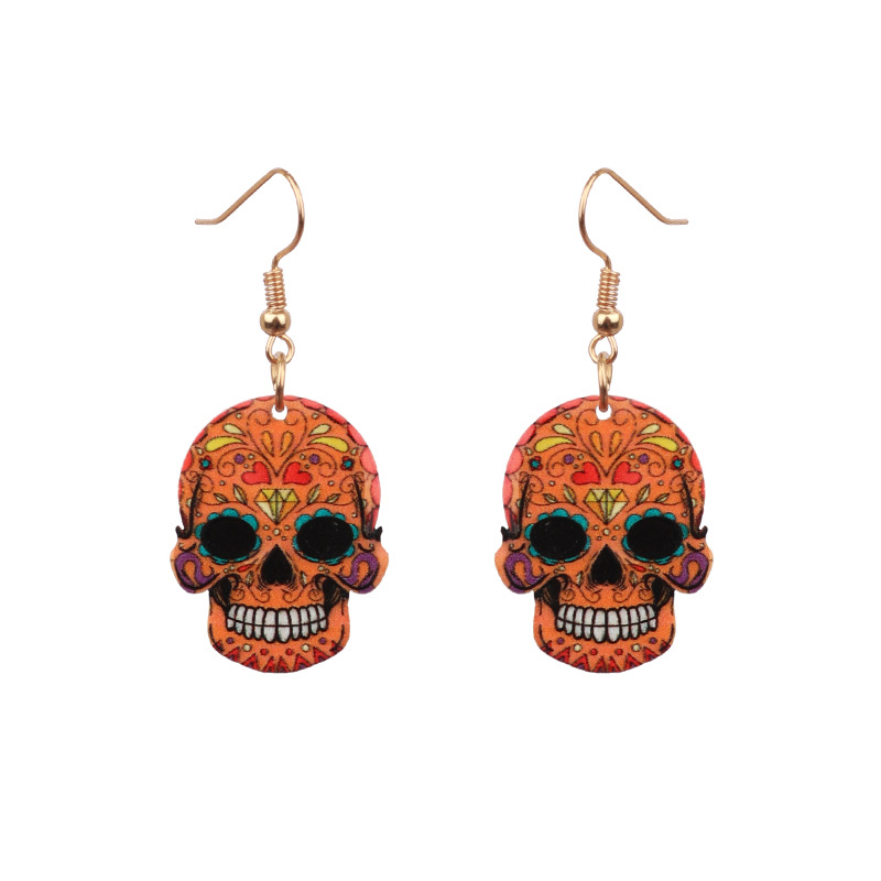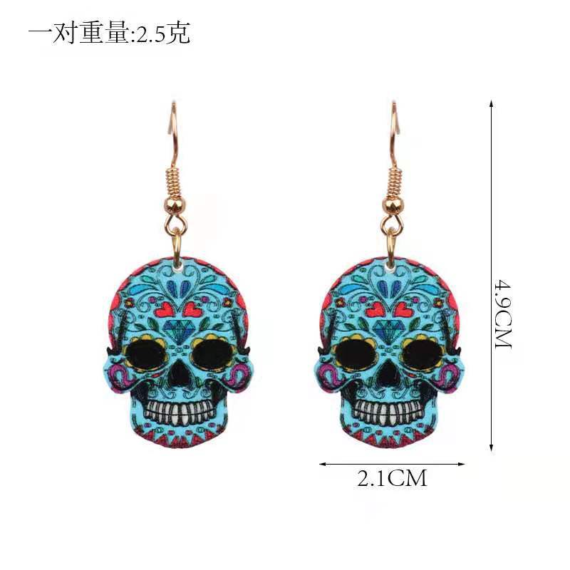 万圣节热卖嘻哈骷髅头亚克力板材情侣耳饰 原创朋克恐惧鬼头耳环