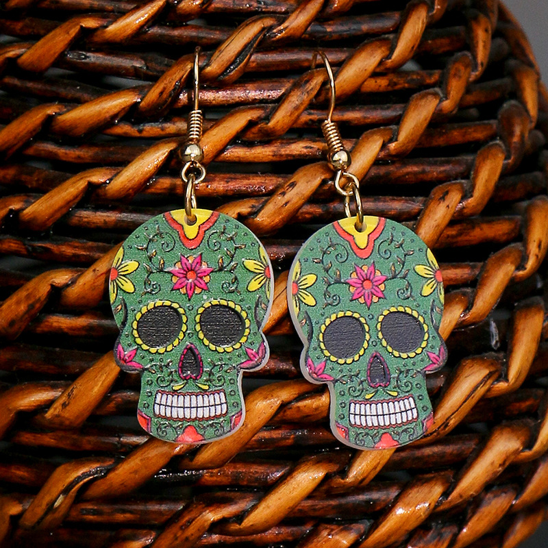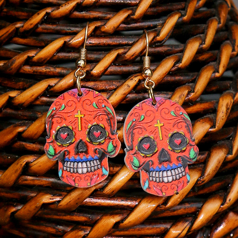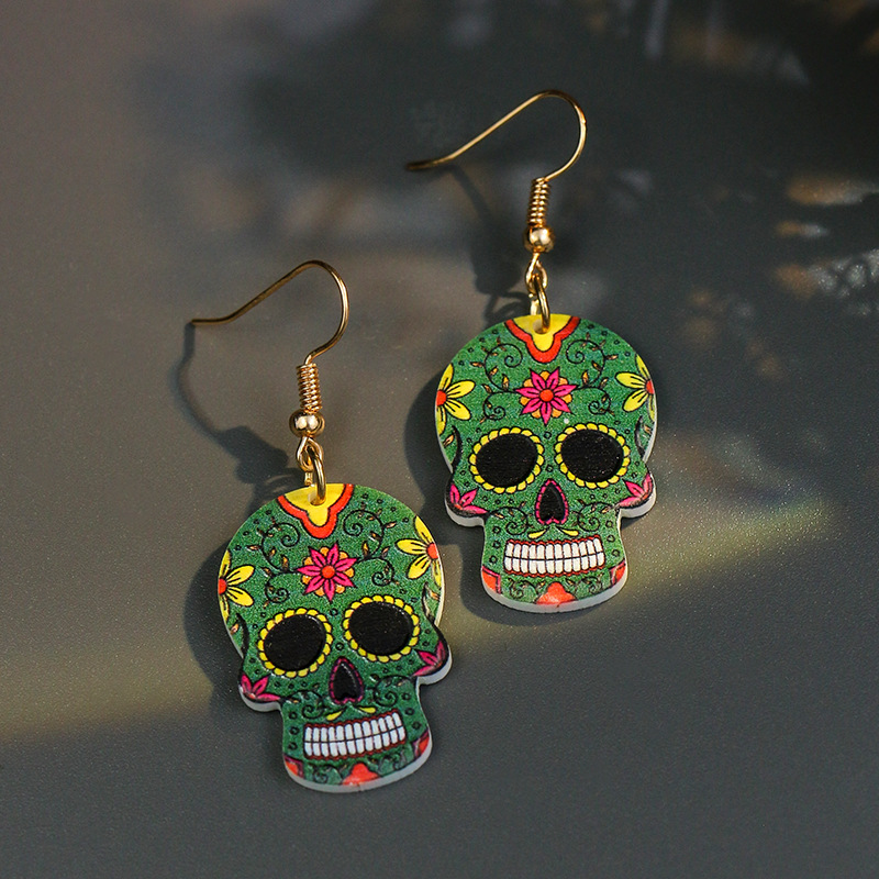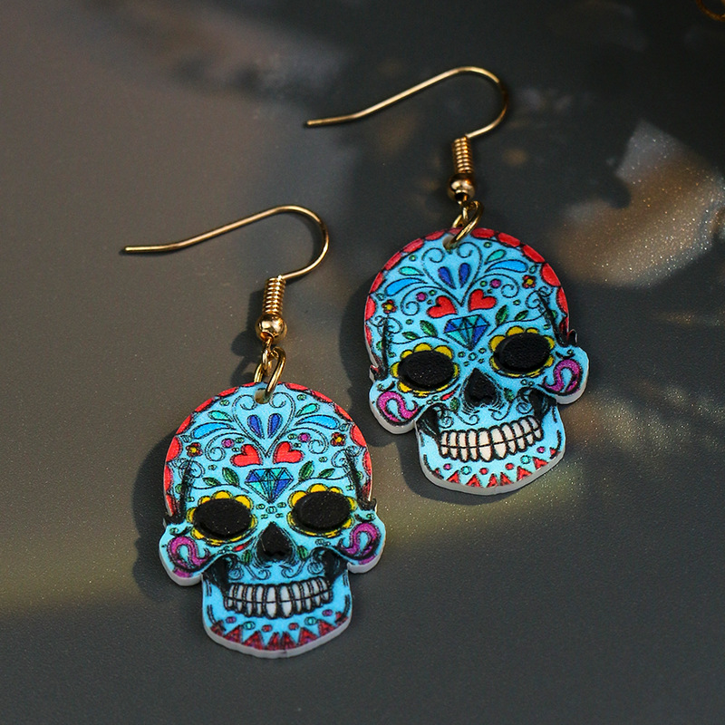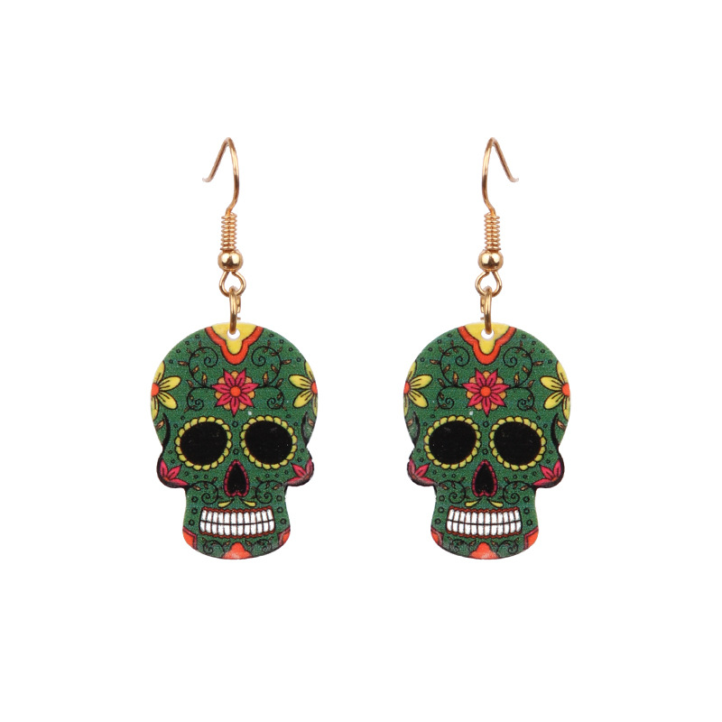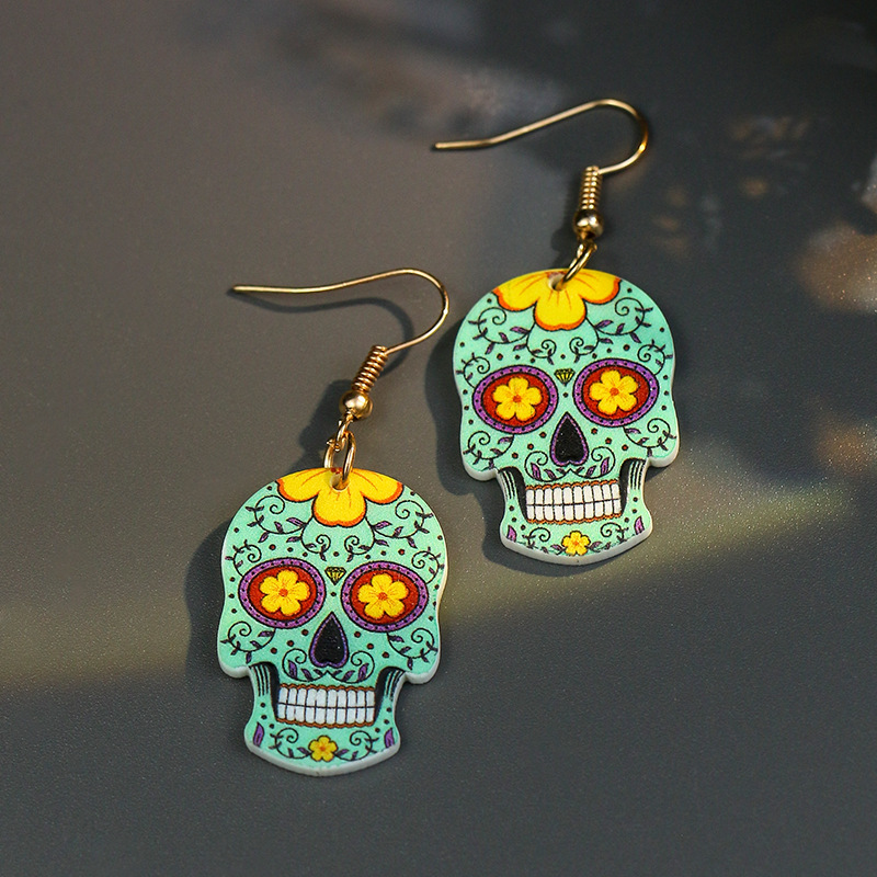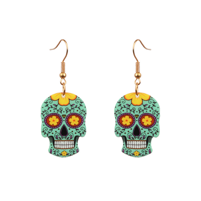 万圣节热卖嘻哈骷髅头亚克力板材情侣耳饰 原创朋克恐惧鬼头耳环