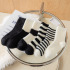 袜子女黑白撞色水貂绒中筒袜秋冬加绒加厚保暖居家月子睡眠袜条纹