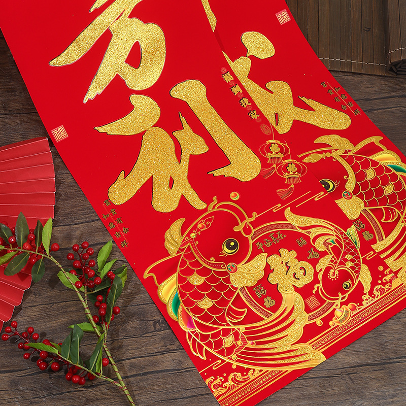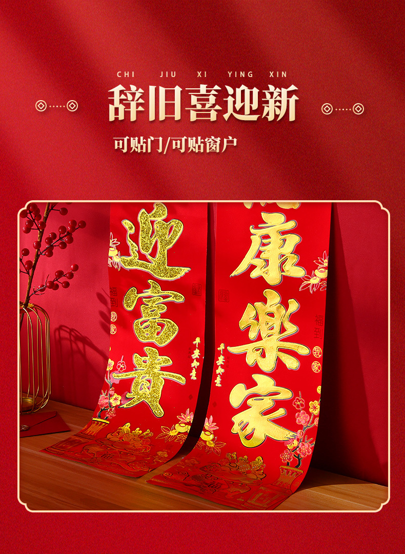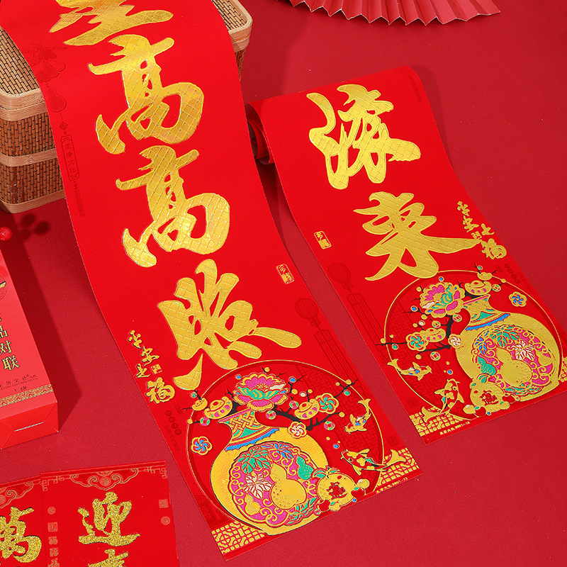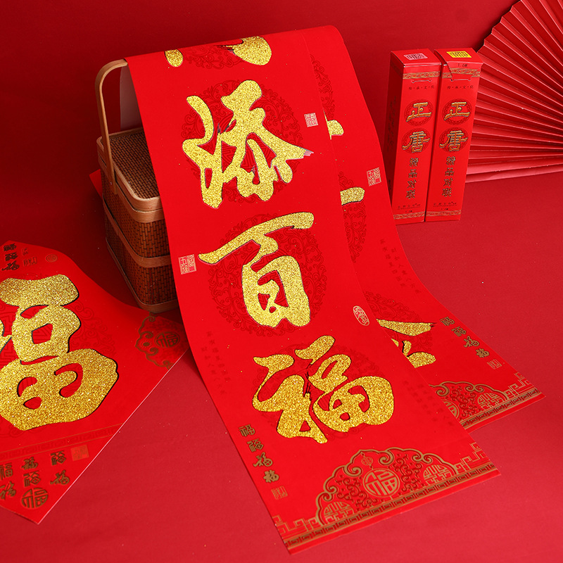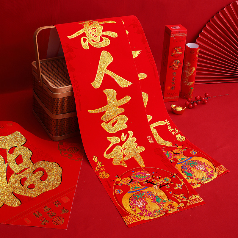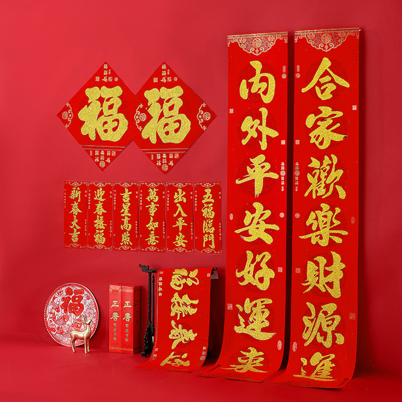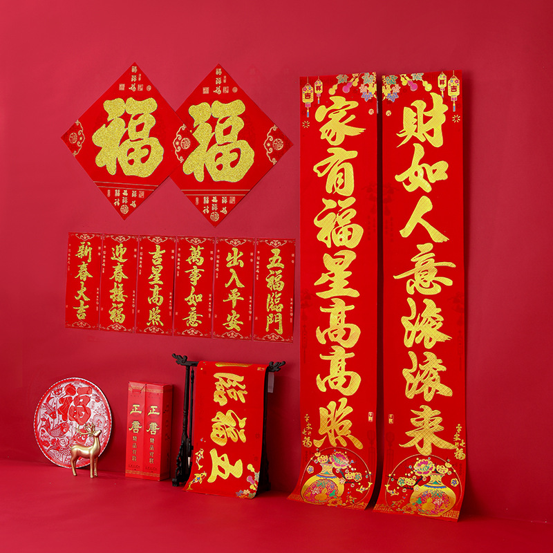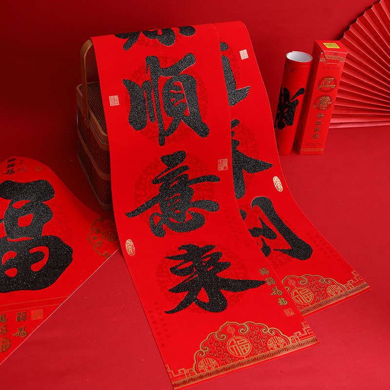 厂家直销2023兔年新春过节高档书法纸烫金对联植绒春联福字画批发