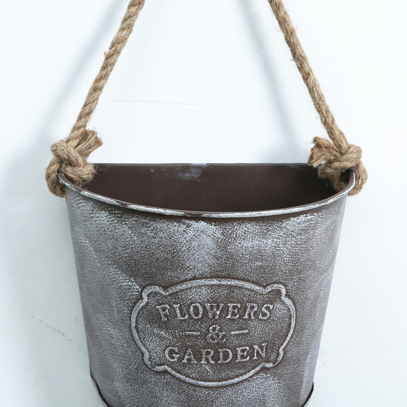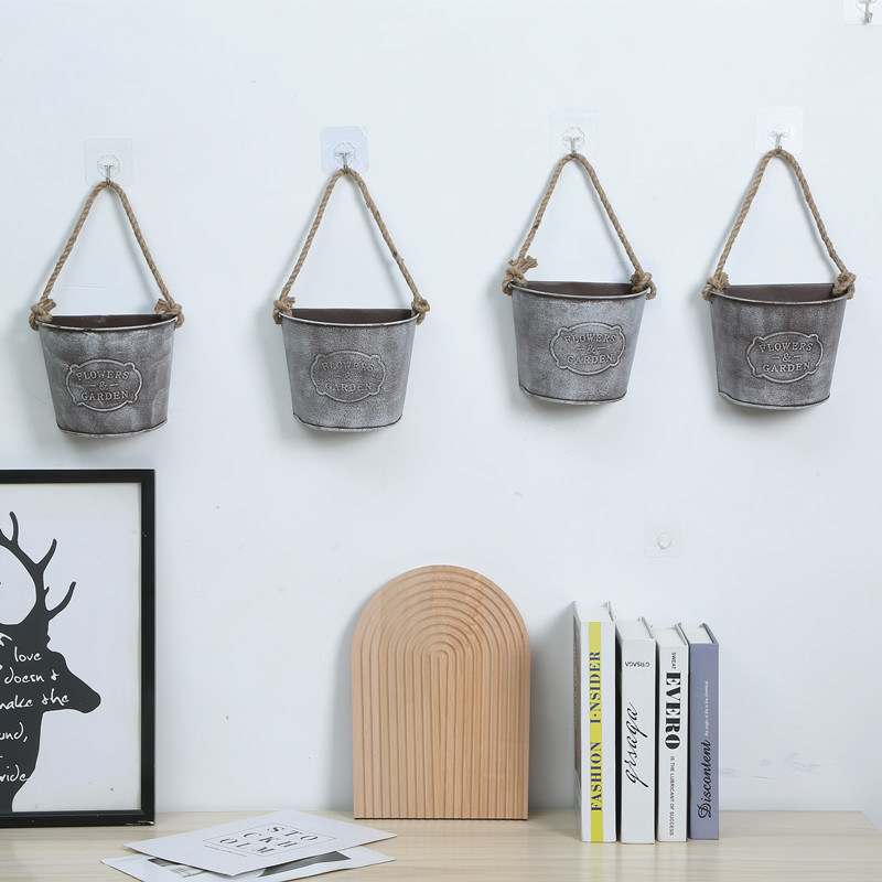 复古铁皮壁挂花盆干花装饰挂件吊篮花器阳台多肉植物铁艺悬挂挂盆