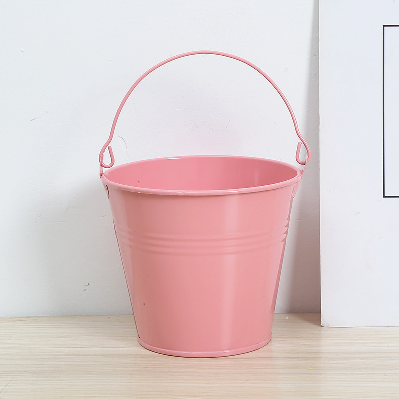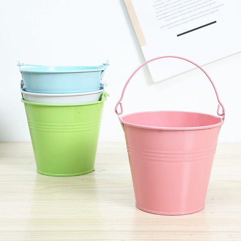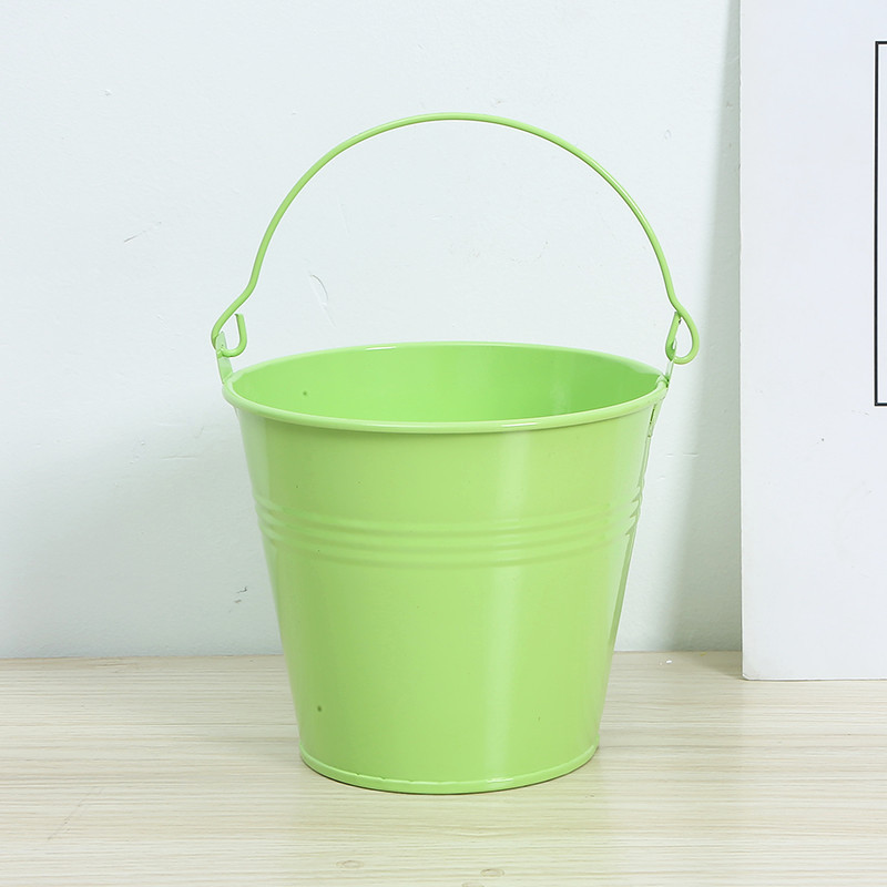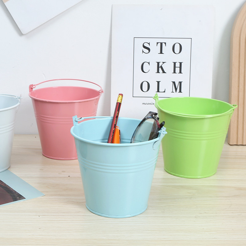 彩色铁皮小提桶金属铁艺花桶收纳小桶阳台绿植多肉套盆桌面装饰桶