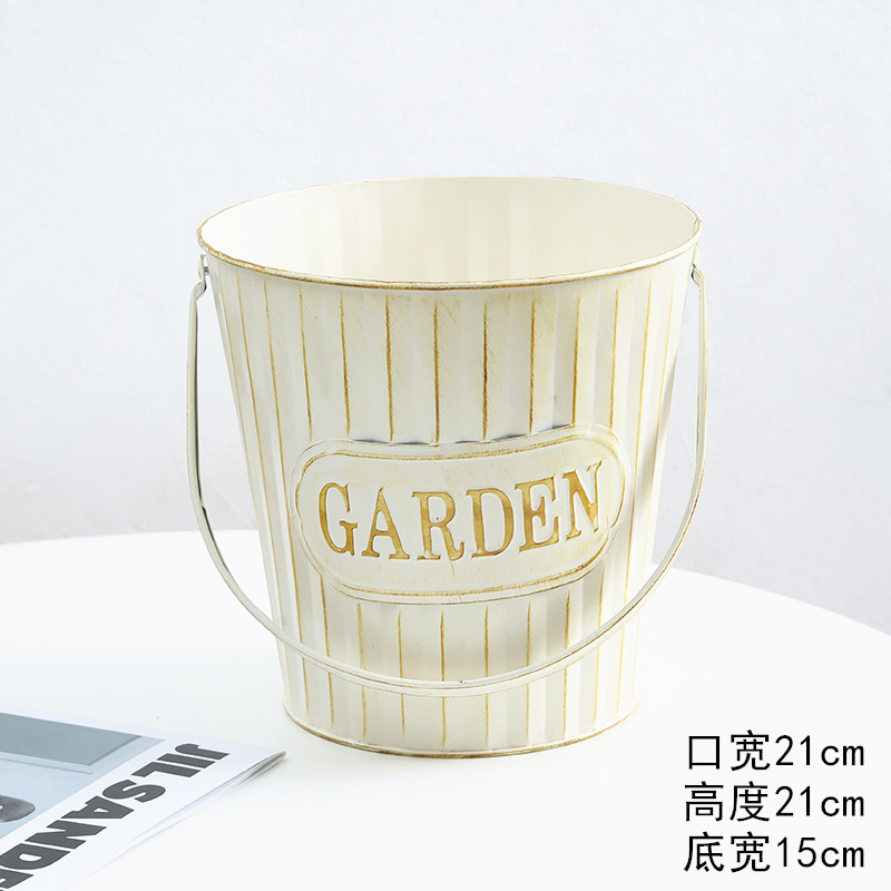 复古做旧铁皮提桶英文字母欧式提桶桌面绿植盆景套盆客厅收纳桶框