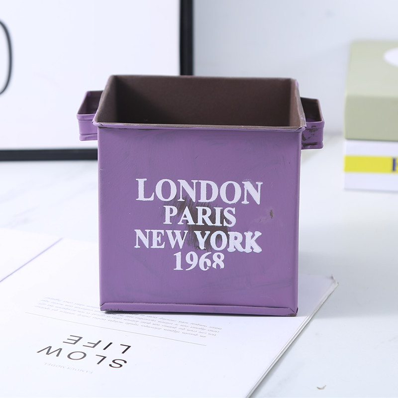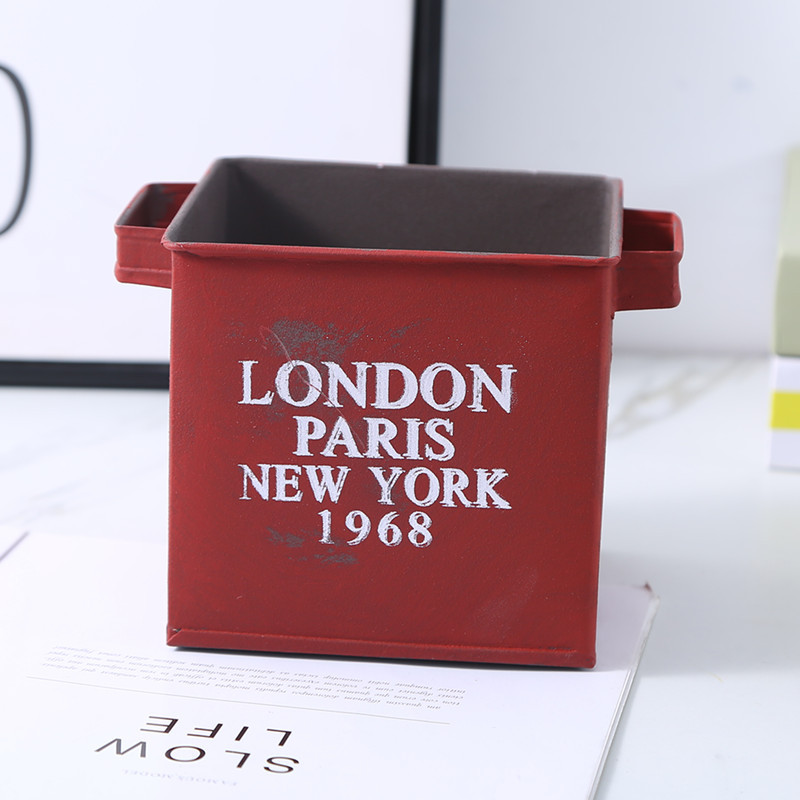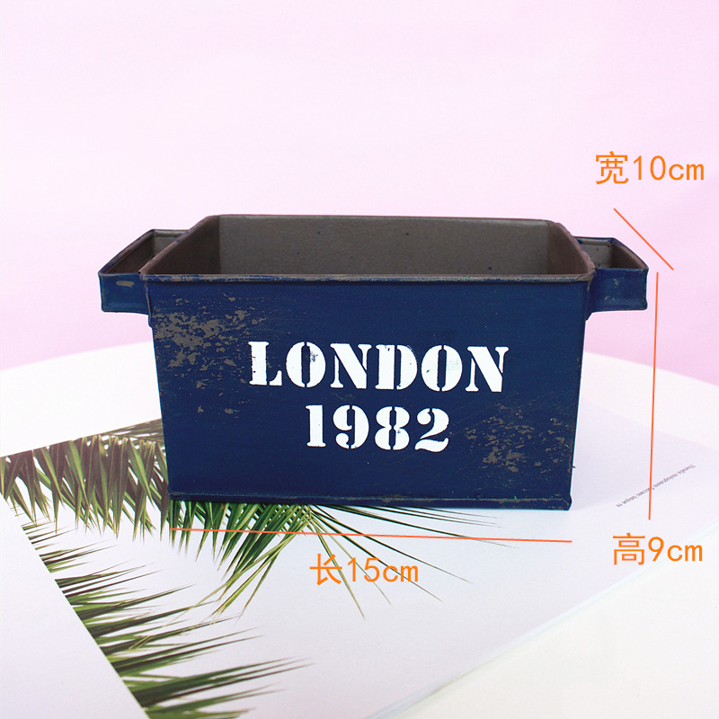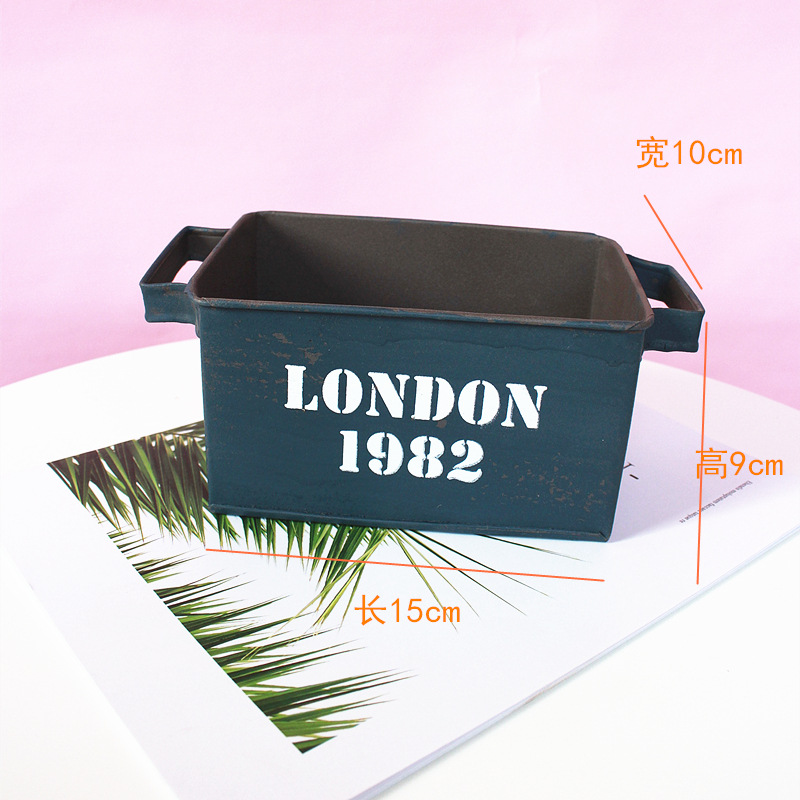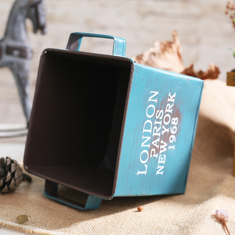 复古做旧方形铁皮花盆桌面创意收纳花器多肉花盆鲜花绿植盆栽花盆