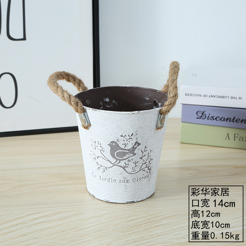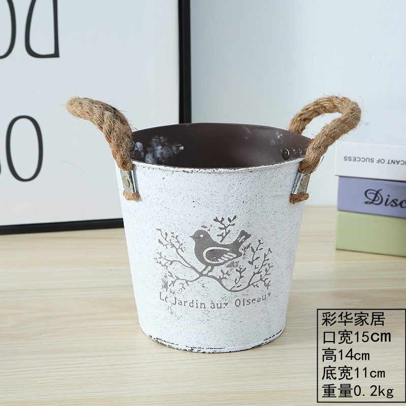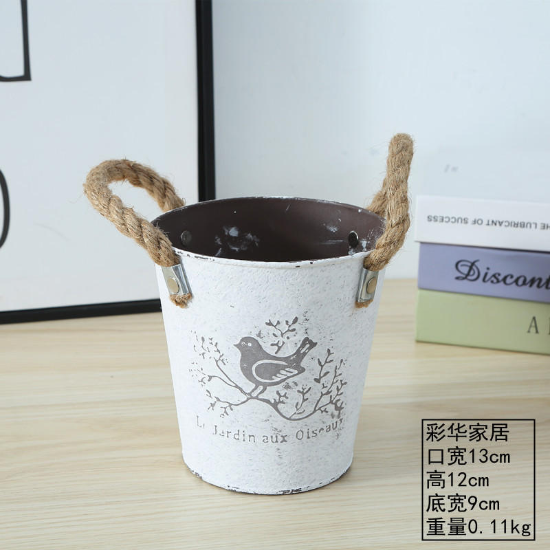 田园复古铁皮花盆小鸟立体图案花盆美式乡村铁花盆多肉金属花盆