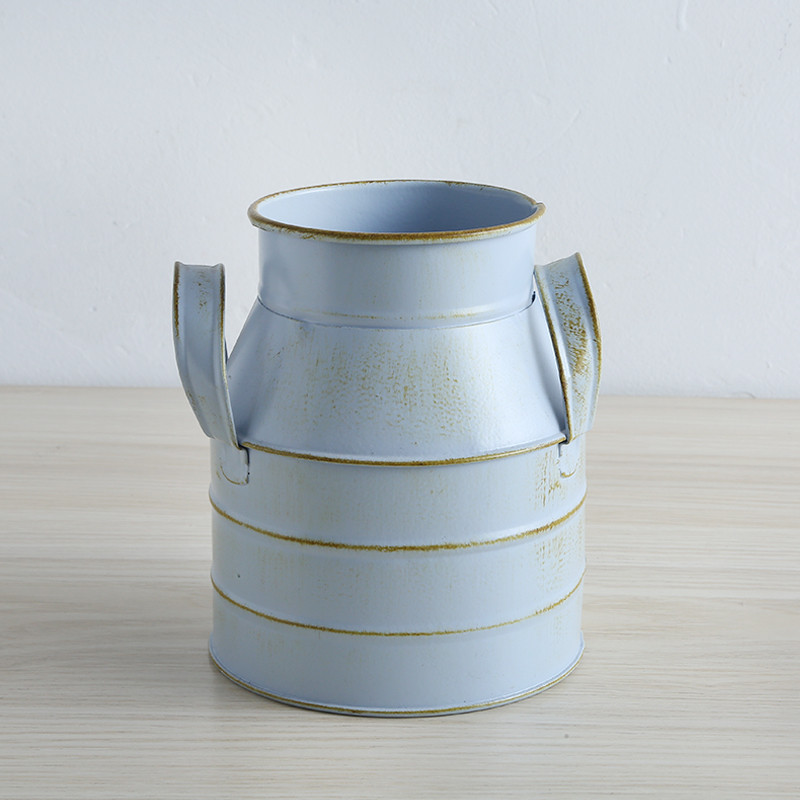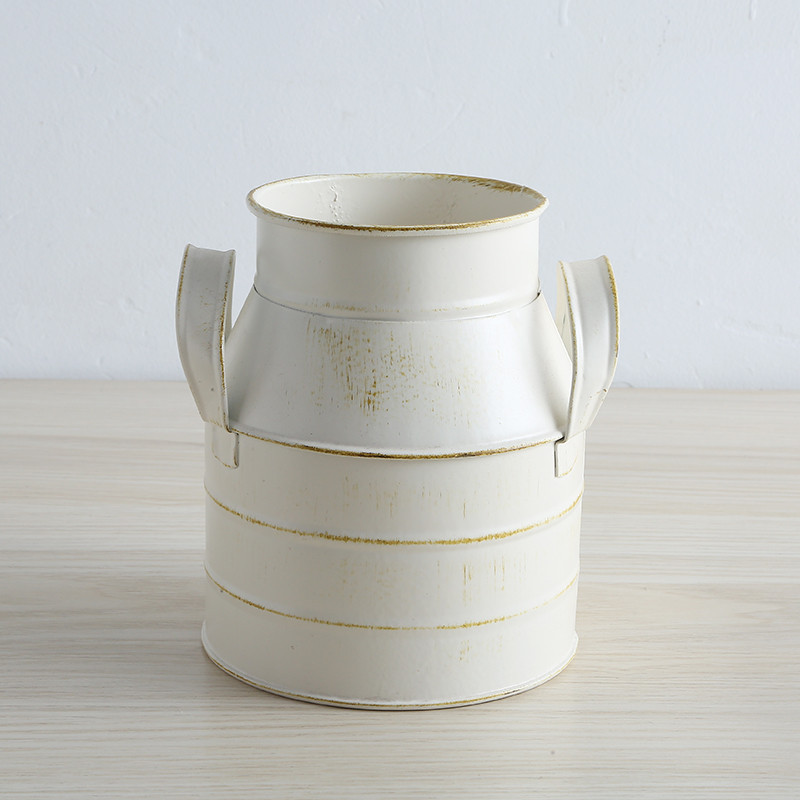 复古做旧奶壶干花器双耳铁皮壶型花盆假花装饰插花桶桌面装饰摆件