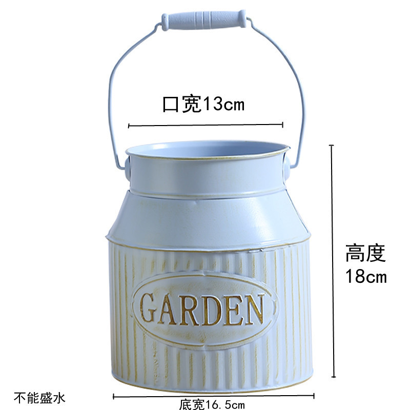 复古干花桶铁皮花壶手提壶插花器花店装饰花器橱窗摆件奶壶干花筒