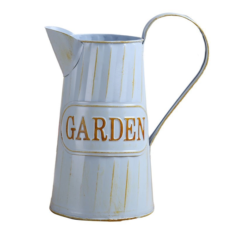 美式复古做旧壶型干花桶蓝色做旧插花桶客厅装饰仿古铁艺干花花瓶
