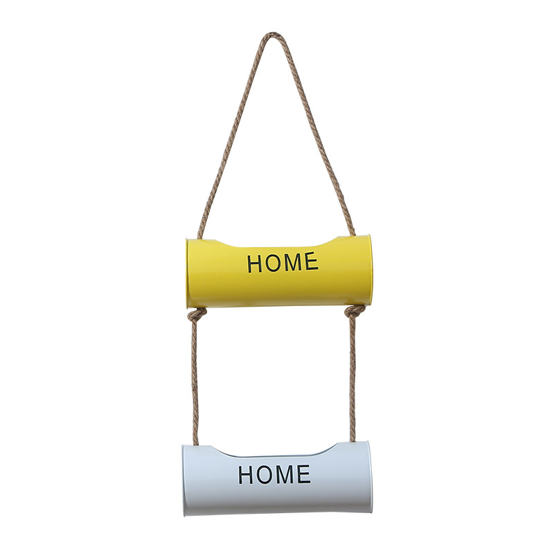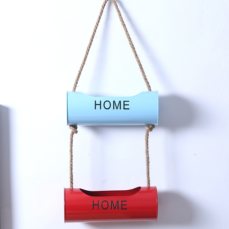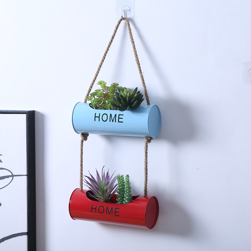 北欧HOME铁皮挂桶麻绳提手圆筒挂件室内墙壁装饰悬挂式吊盆插花器