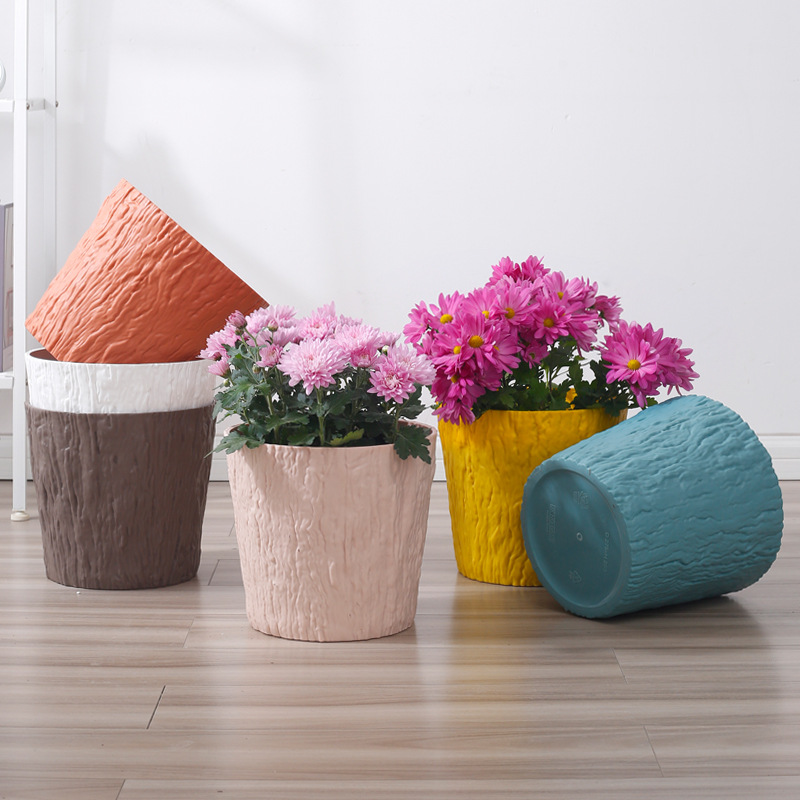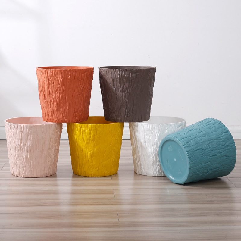 特厚塑料花盆生产批发仿木纹简约懒人家居装饰北欧摆件酒店加仑盆