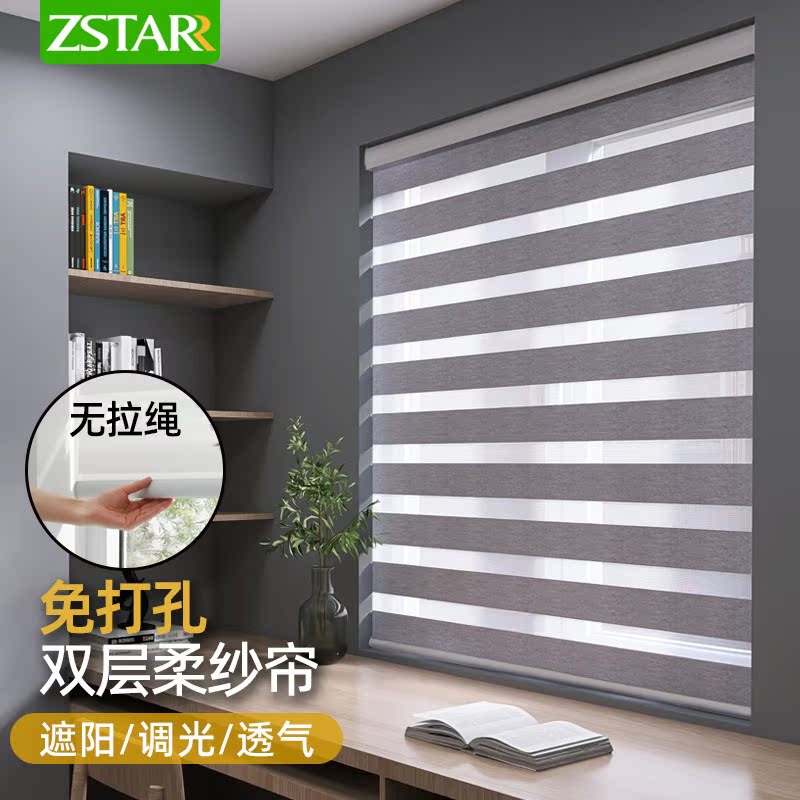 无绳柔纱帘卷拉式卷帘窗帘柔纱帘百叶窗帘日夜帘斑马帘窗饰窗纱