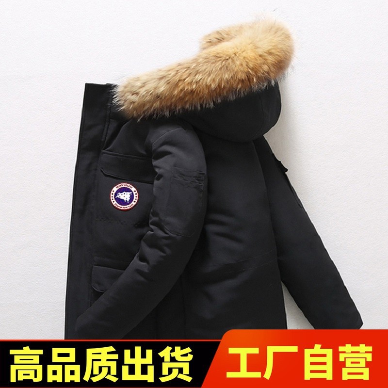 加拿大羽绒服跨境男女情侣08远征派克服白鸭绒工装外套大貉子毛领