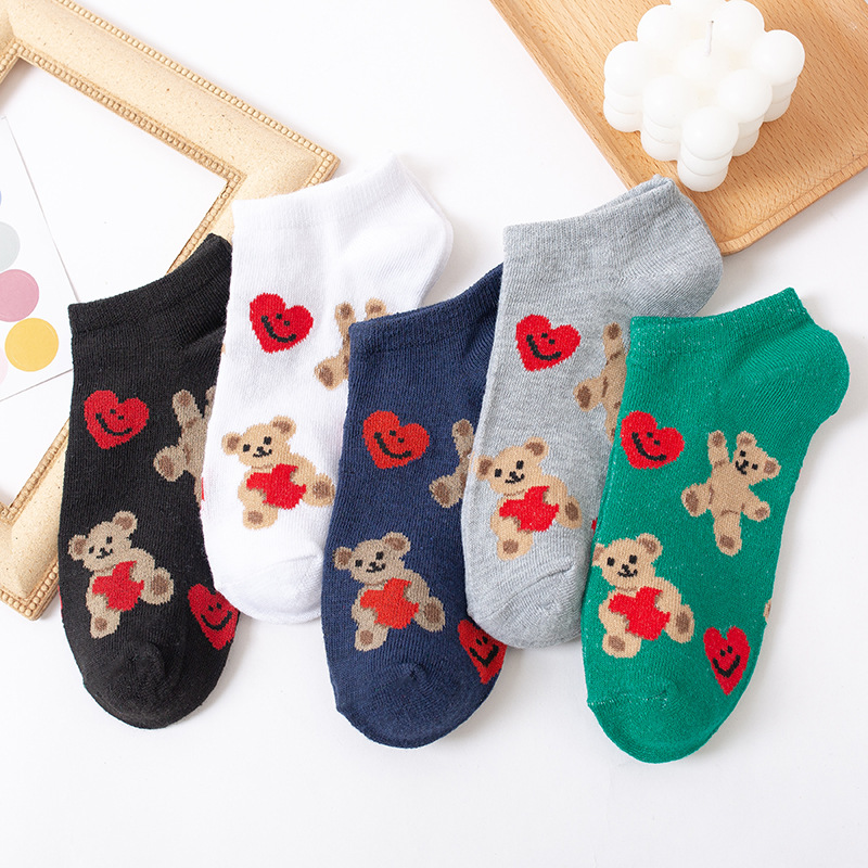 船袜女 十色小熊袜子船袜小熊袋装刺绣袜子低短筒春夏季 袜子批发