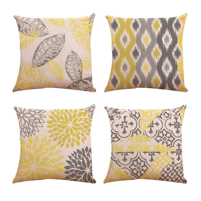 跨境亚马逊北欧简约几何烟花树叶图案亚麻抱枕套汽车沙发靠垫批发