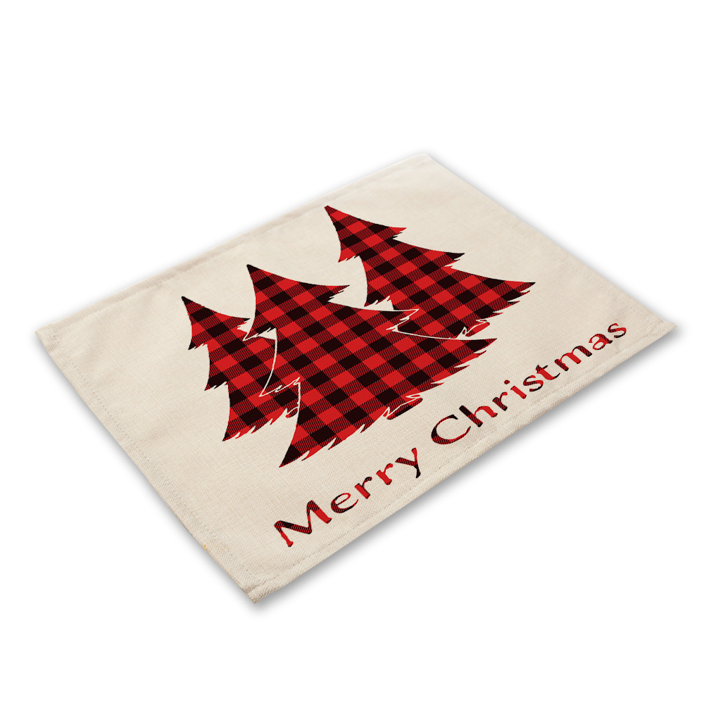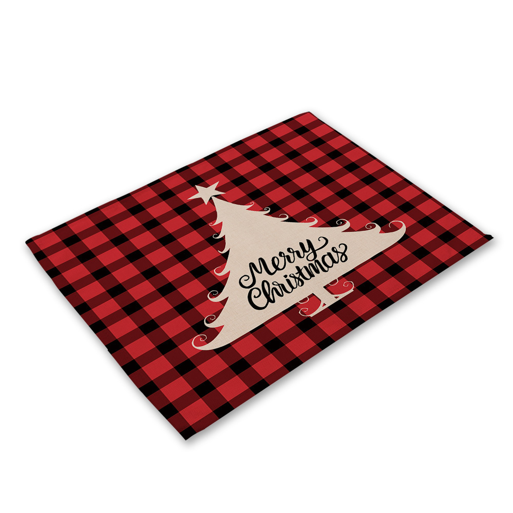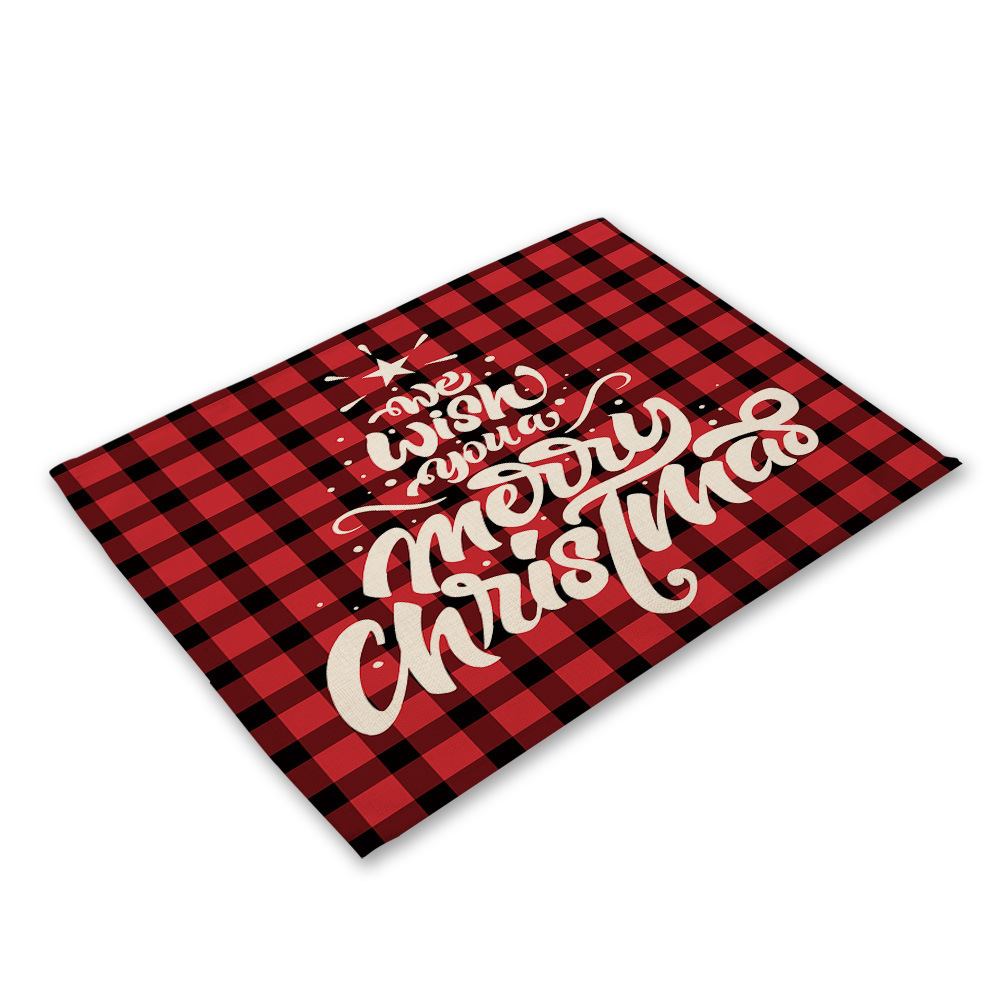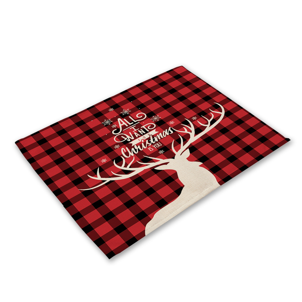 红色格子圣诞系列棉麻布艺西餐垫 42x32cm餐厅桌布垫餐具垫批发