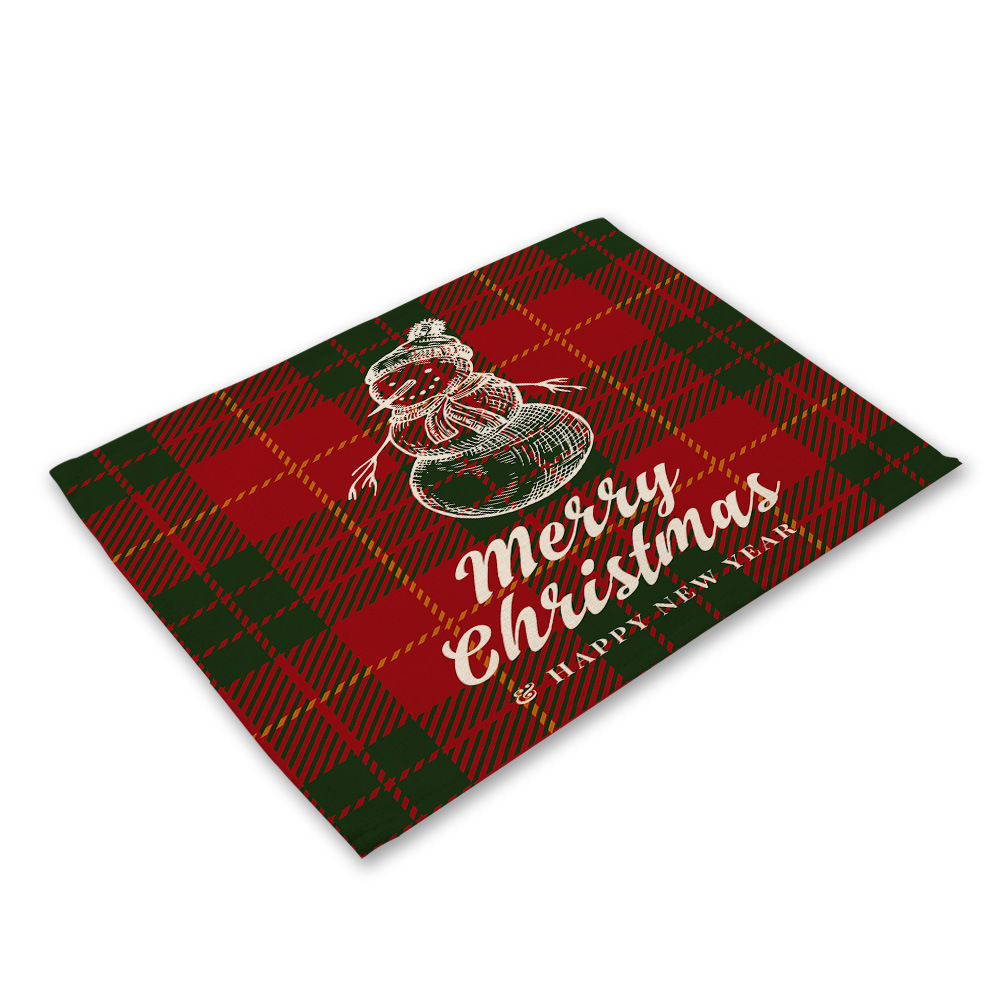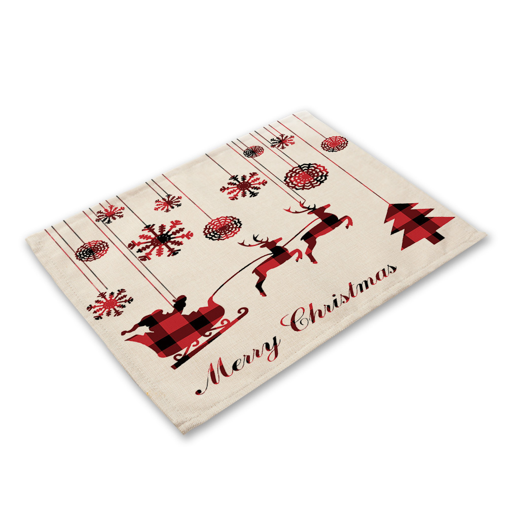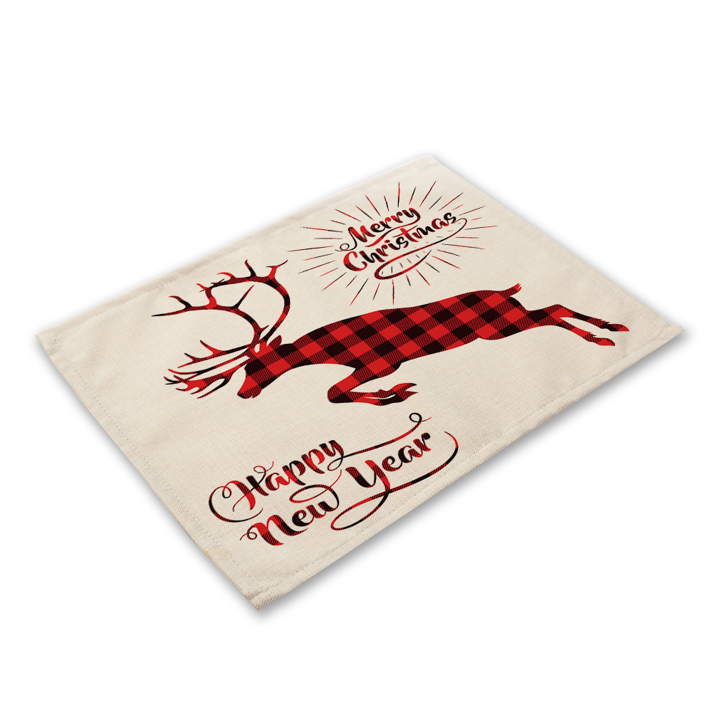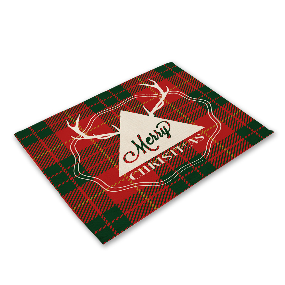 红色格子圣诞系列棉麻布艺西餐垫 42x32cm餐厅桌布垫餐具垫批发