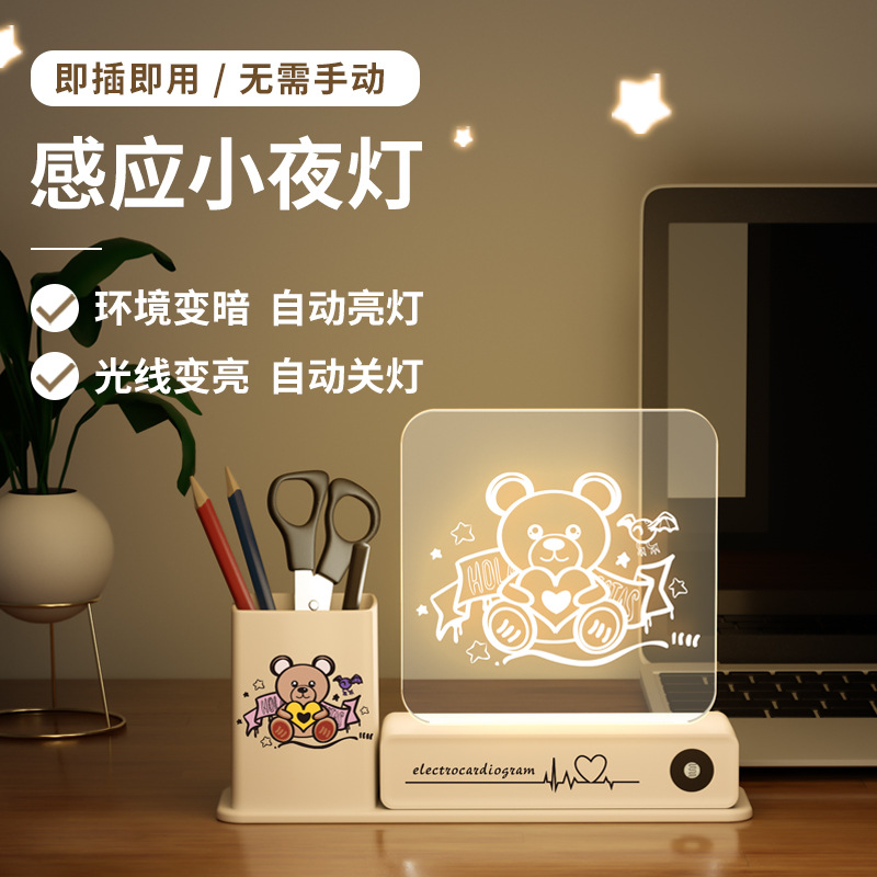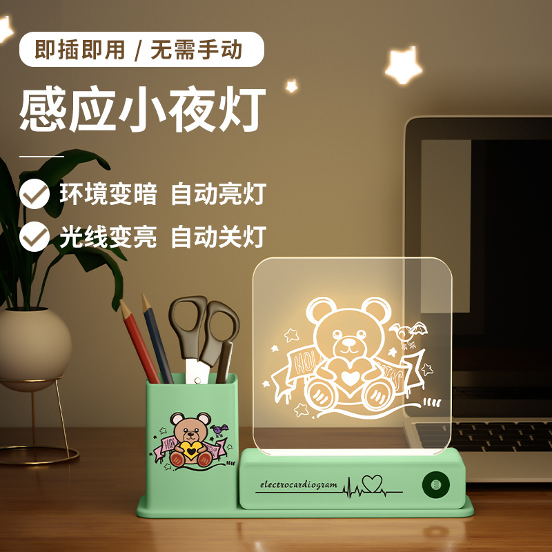 创意3D笔筒小夜灯卧室走廊氛围感应灯LED挂壁卡通灯亚克力礼品