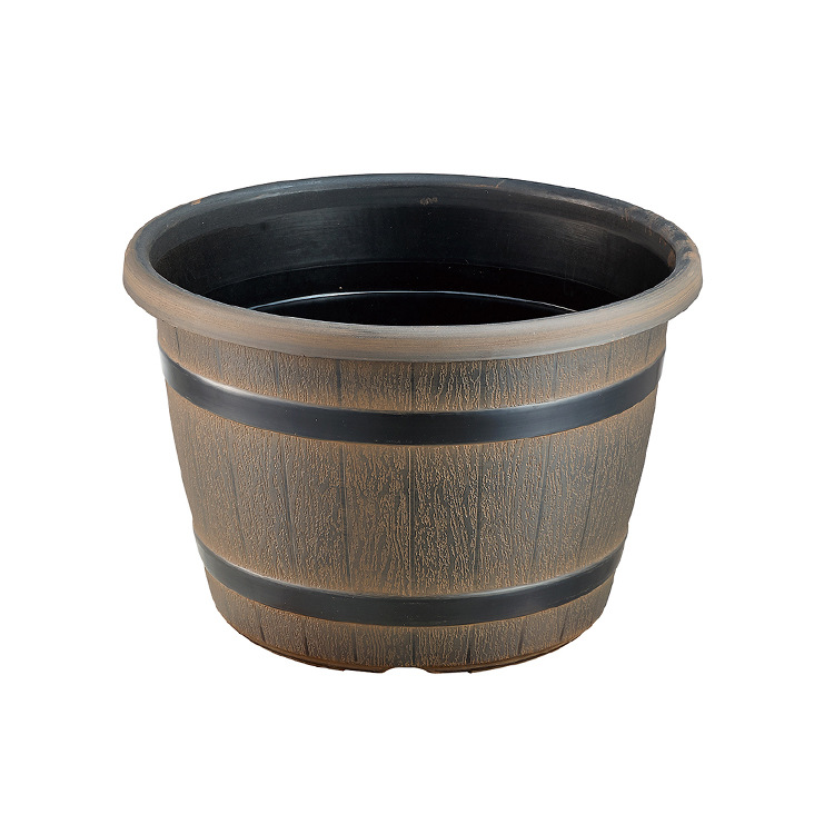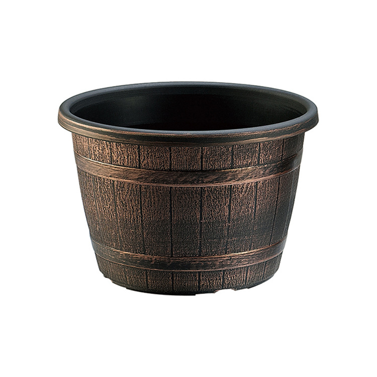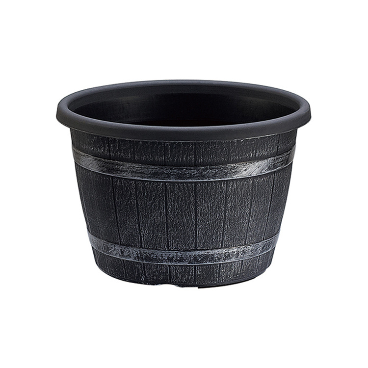 仿木纹桶设计塑料花盆仿金属仿古黑加仑盆园艺吊篮阳台户外装饰