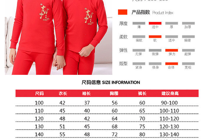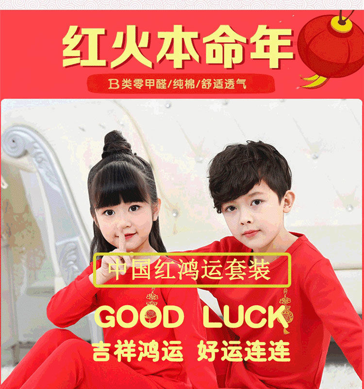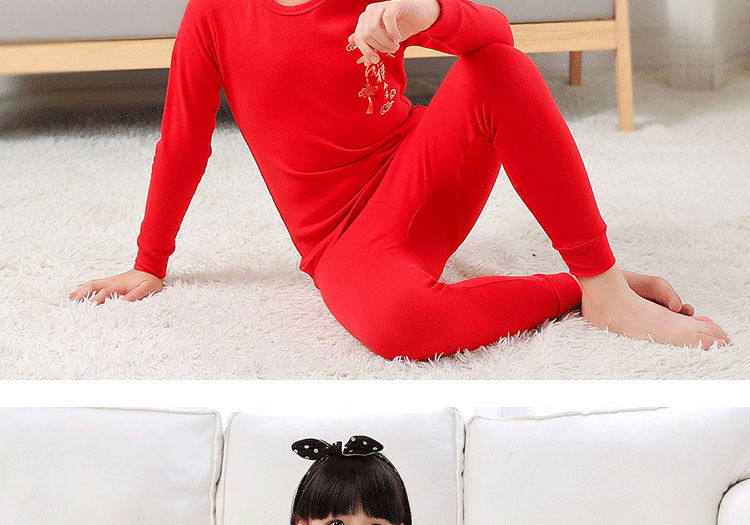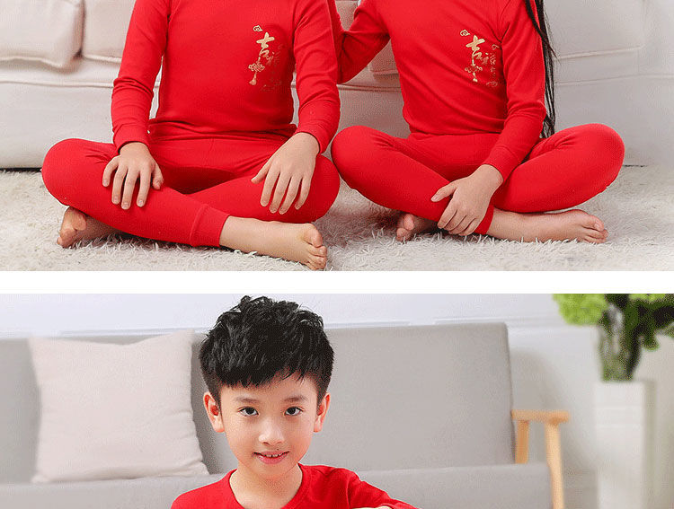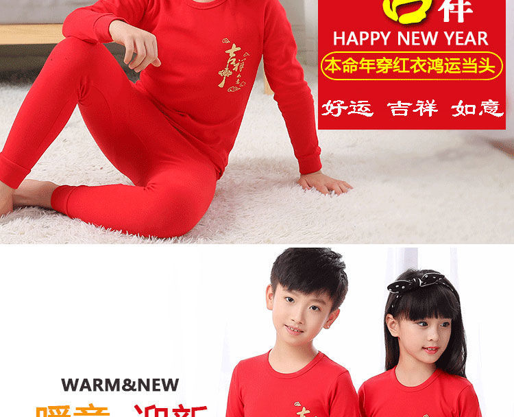 22儿童本命年内衣套装男女童新年保暖秋衣秋裤中小童大红色童装
