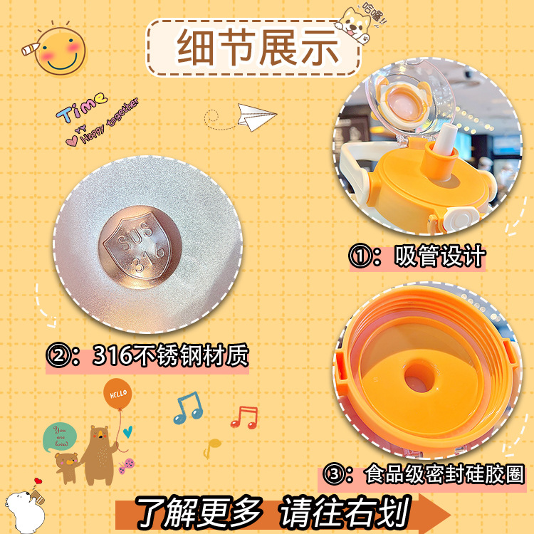 可爱儿童大肚杯保温杯316不锈钢大容量新款吸管水杯礼品杯子批发