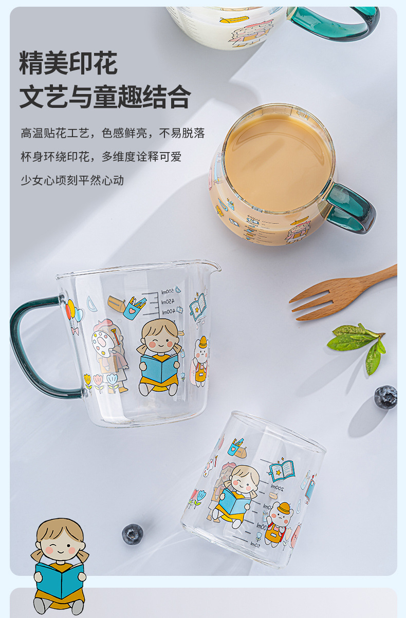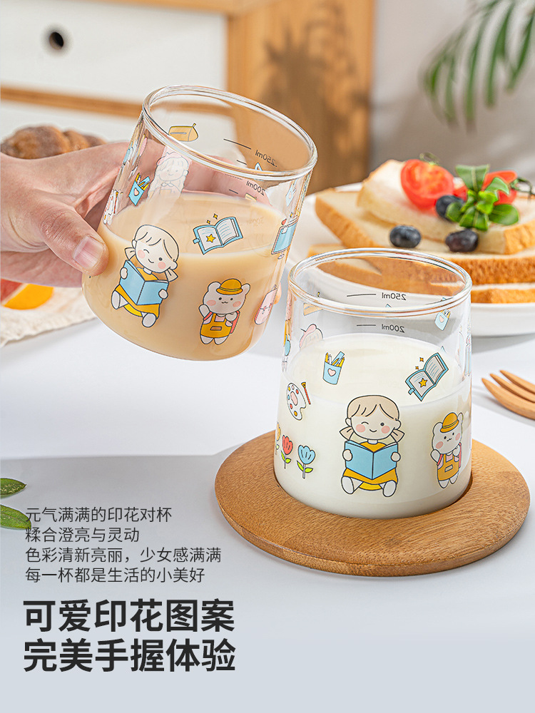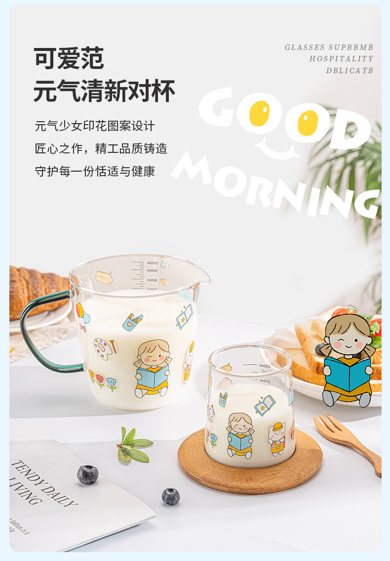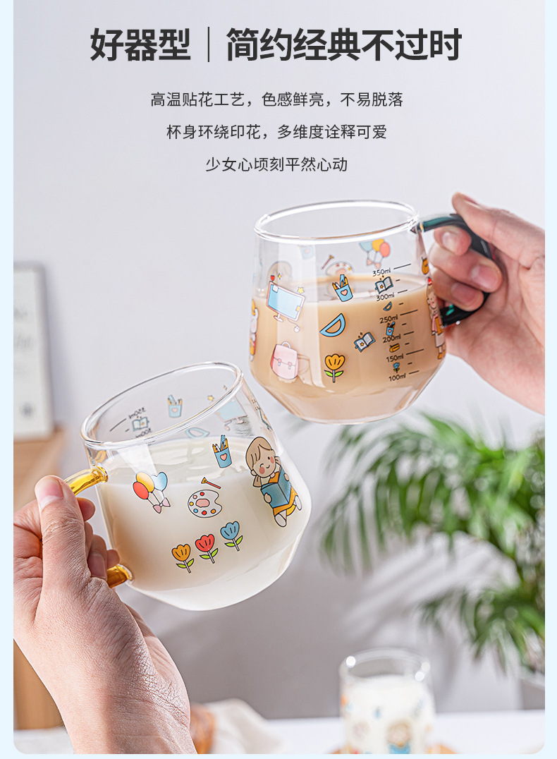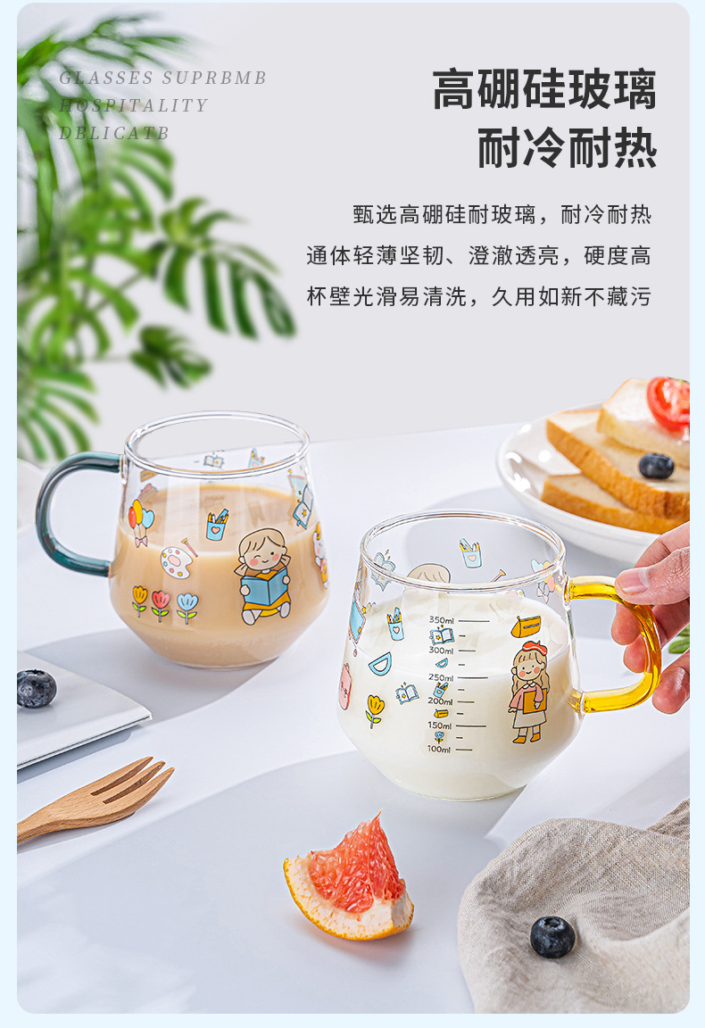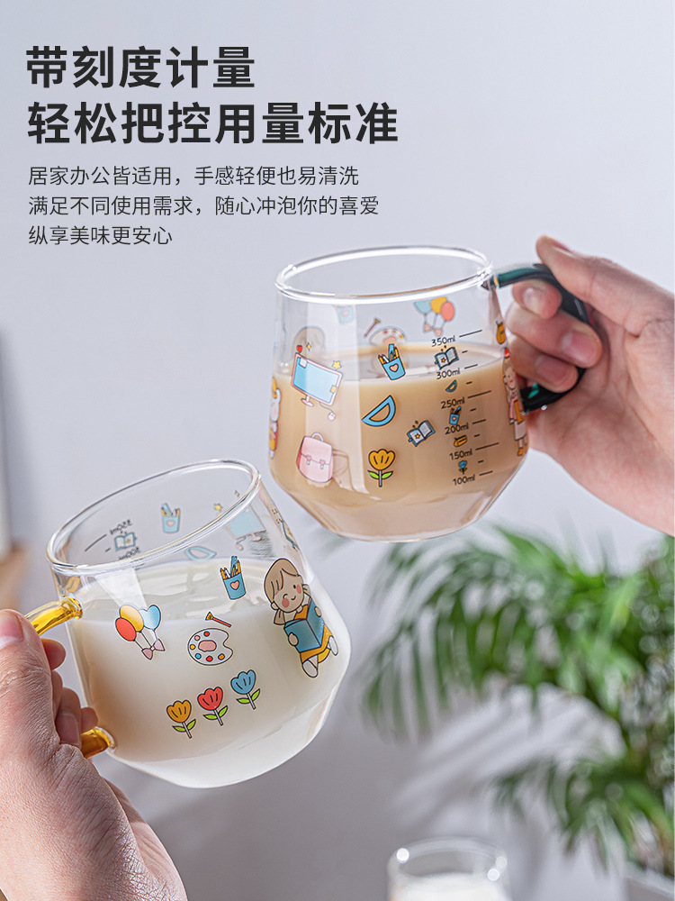 高硼硅儿童牛奶杯带刻度可微波耐热玻璃杯大容量情侣对杯早餐杯女