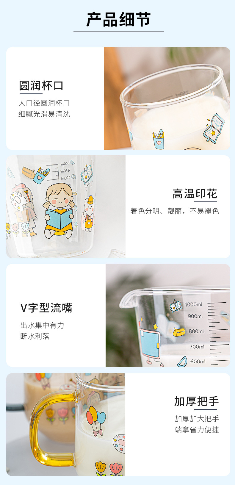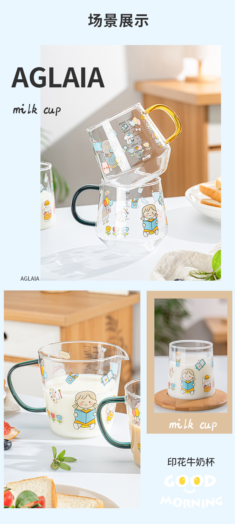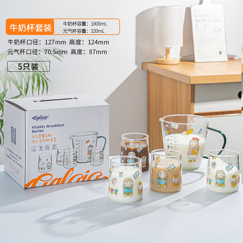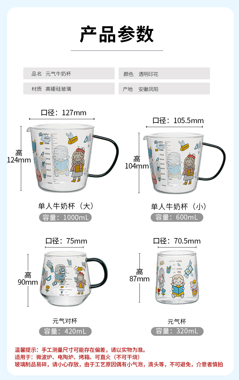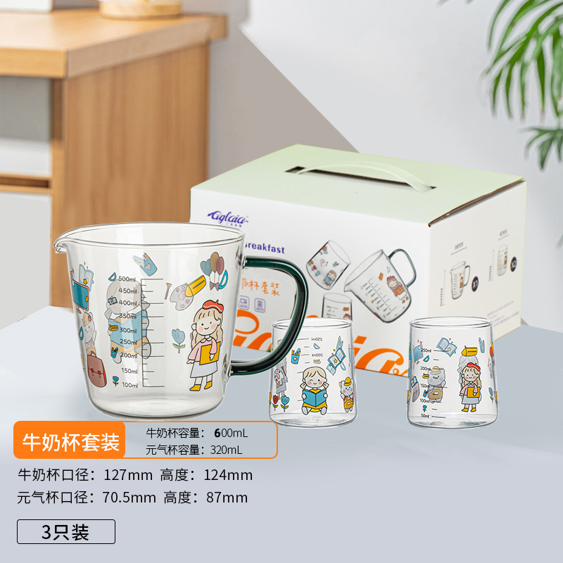 高硼硅儿童牛奶杯带刻度可微波耐热玻璃杯大容量情侣对杯早餐杯女