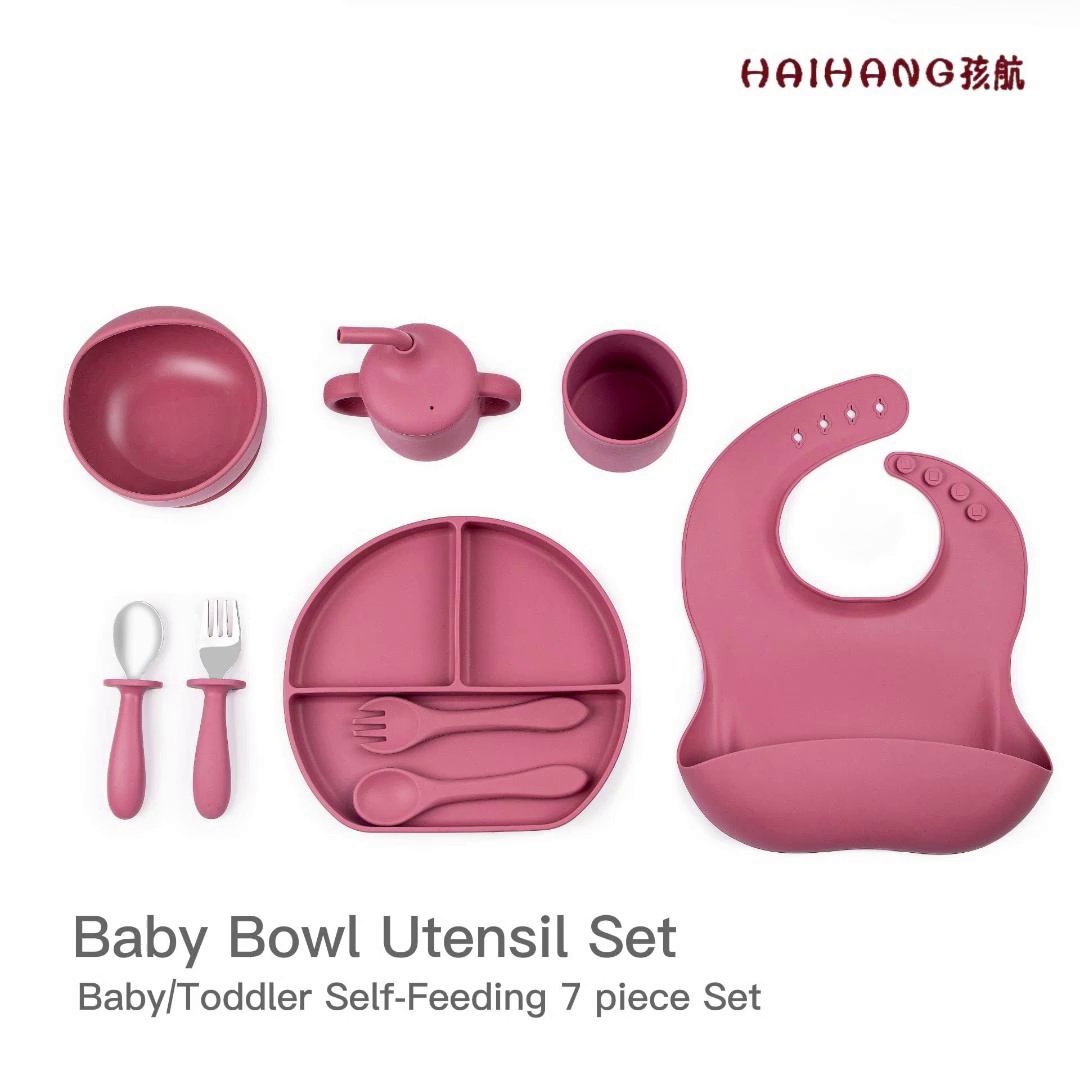 儿童硅胶餐具套装组合围兜硅胶餐盘婴儿辅食碗宝宝吸管杯勺子吃饭