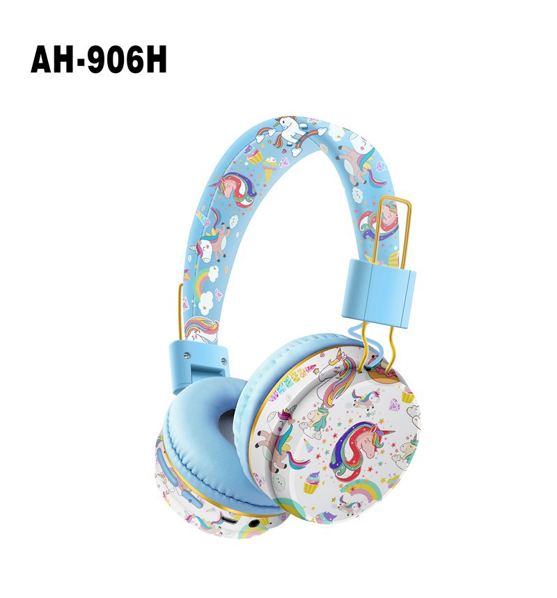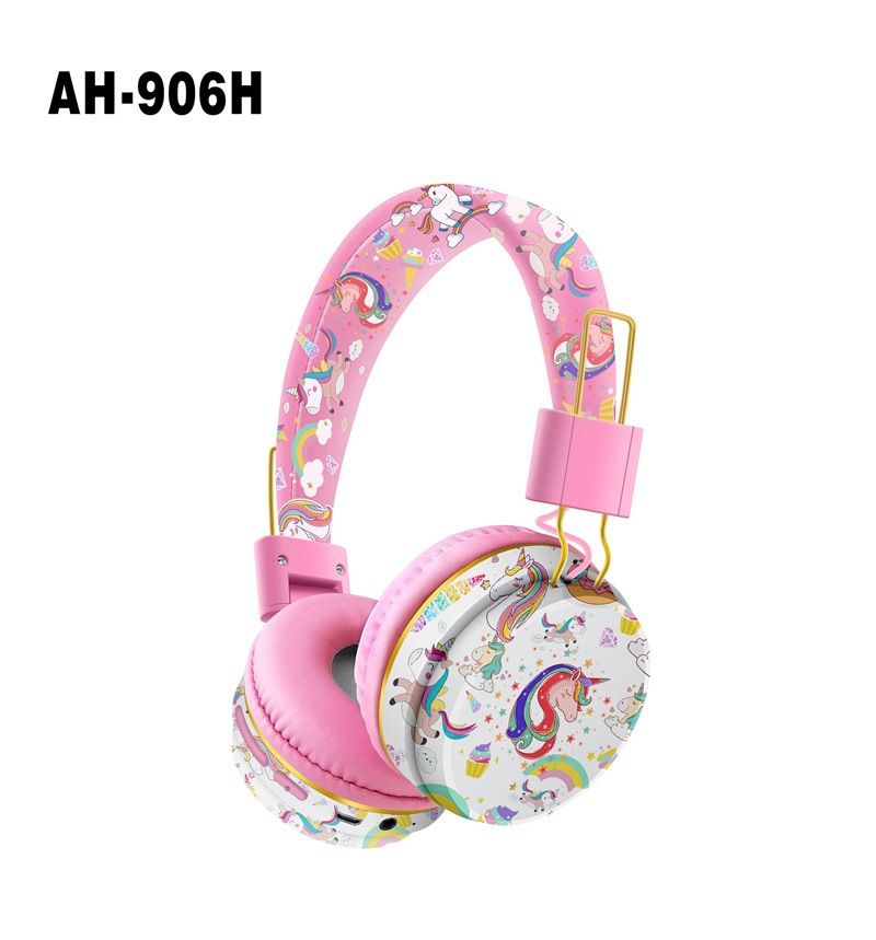 跨境新款AH-906H可爱独角兽卡通蓝牙耳机儿童学习头戴式无线折叠