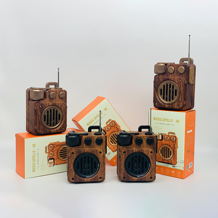 新款跨境A6蓝牙音响迷你插卡收音机无线复古小音响户外便携音箱