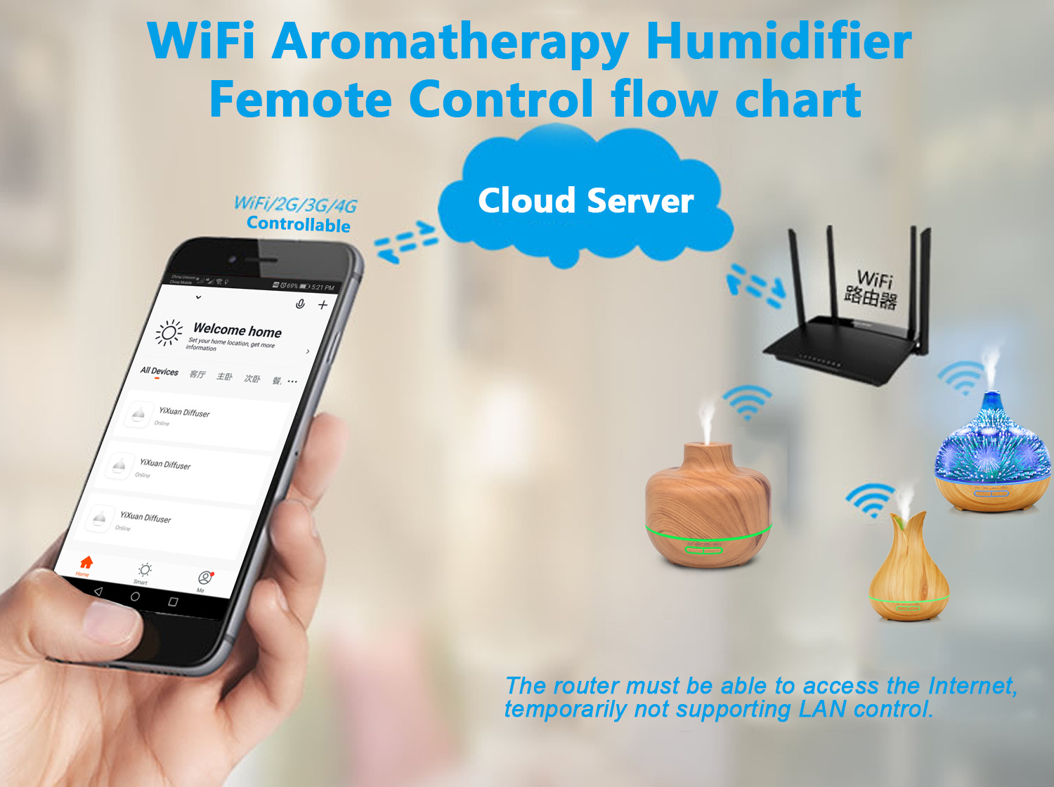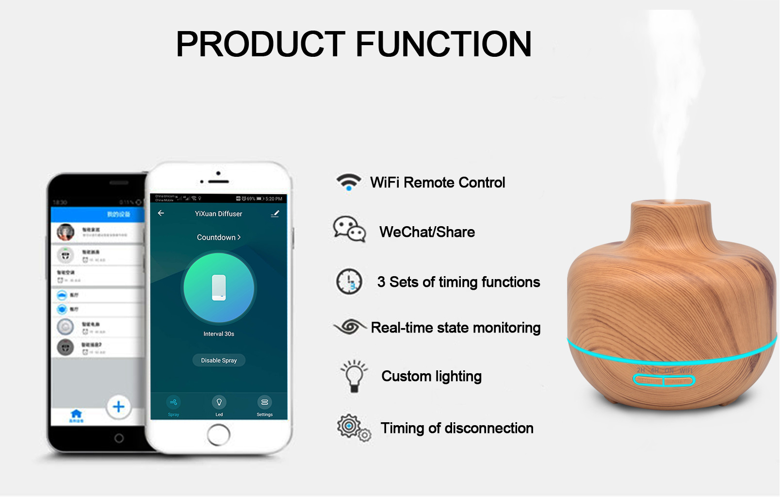 外贸专供创意智能WIFI木纹香薰机大雾空气净化扩香智能加湿器商品