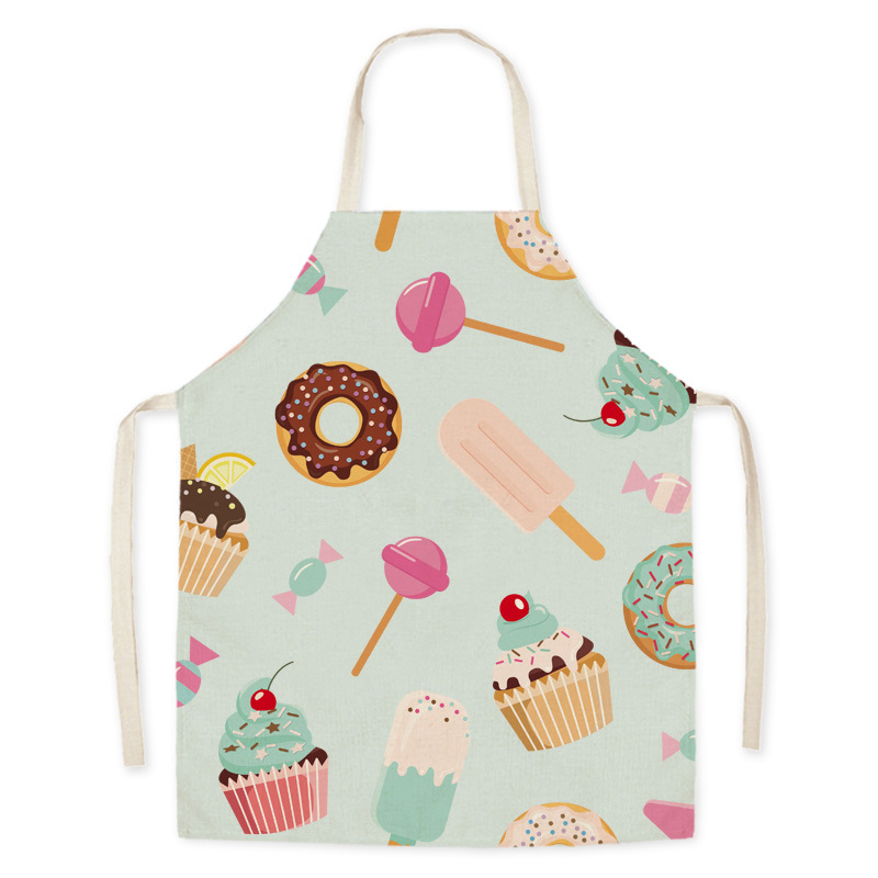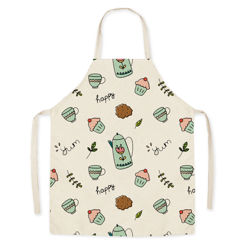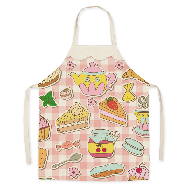 亚麻工作围裙夏日橙子印花水果图案成人亲子无袖围腰家务围裙