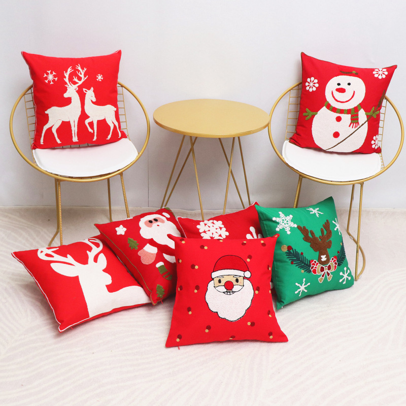 刺绣花床头靠枕靠包可爱卡通办公室靠垫美式家居沙发新年圣诞抱枕