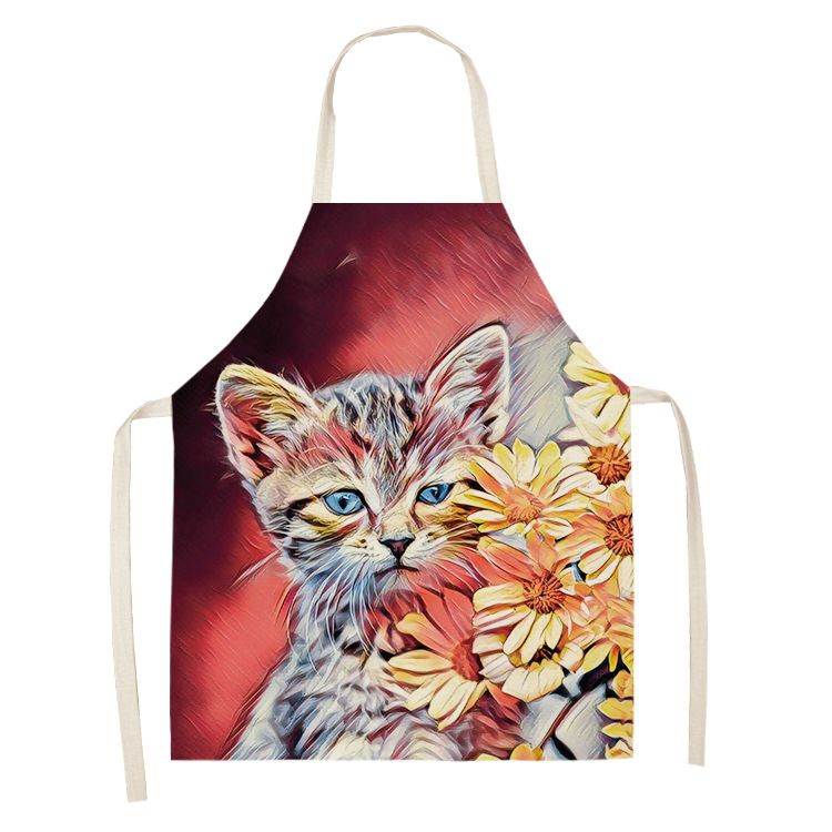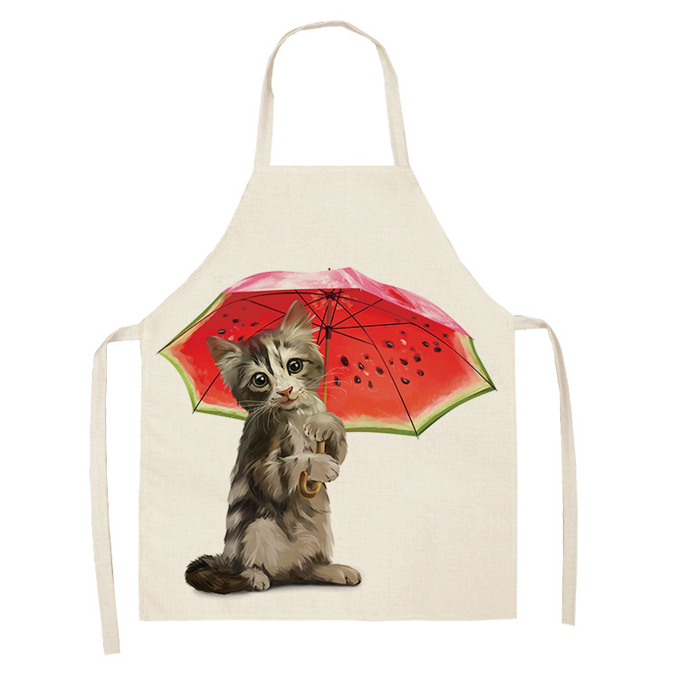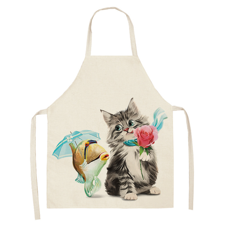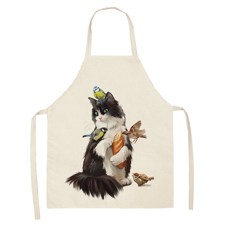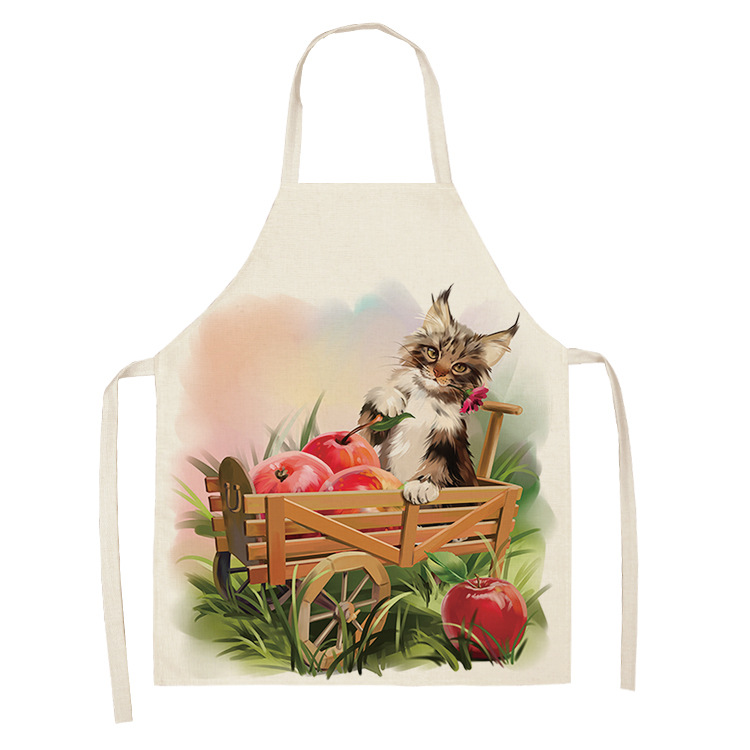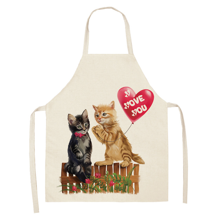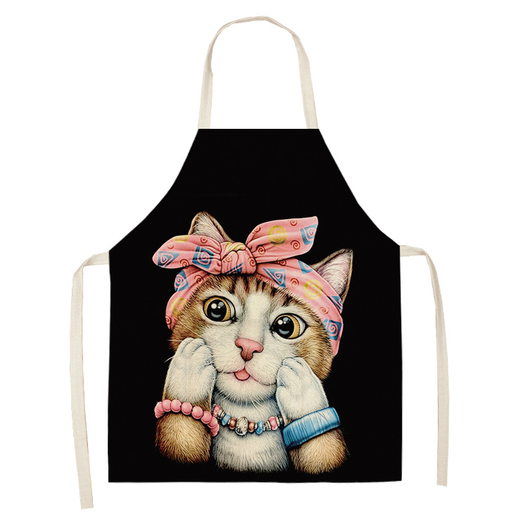 2025新款可爱卡通猫咪印花无袖围裙日用防污亲子无袖罩衣厂家直发