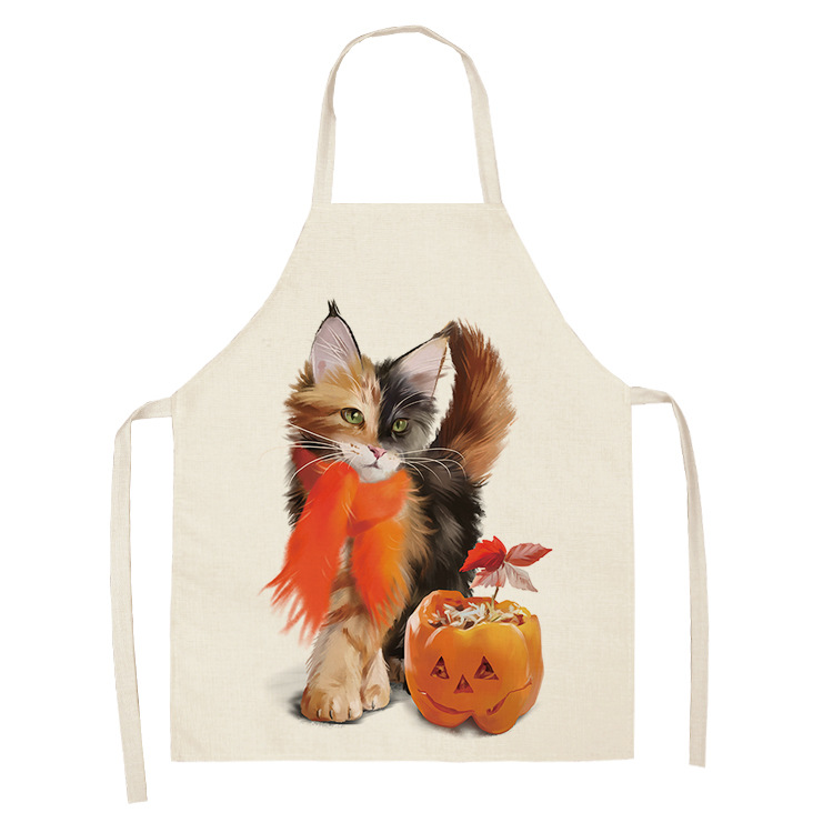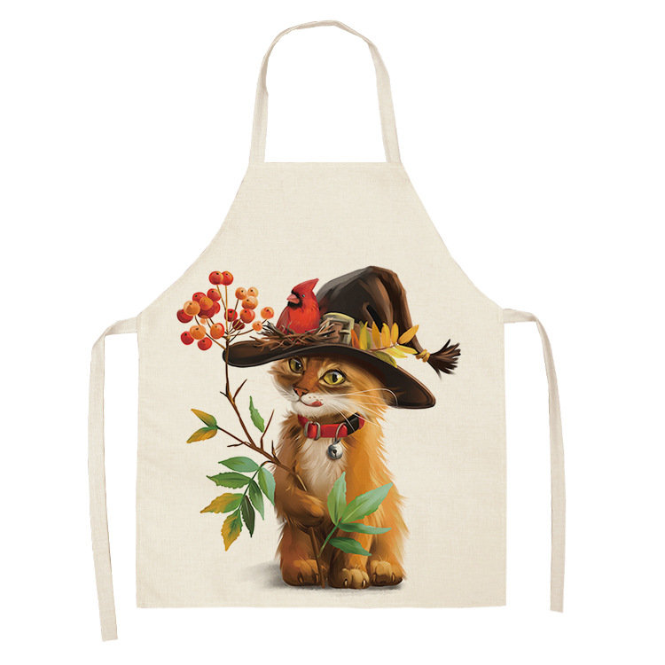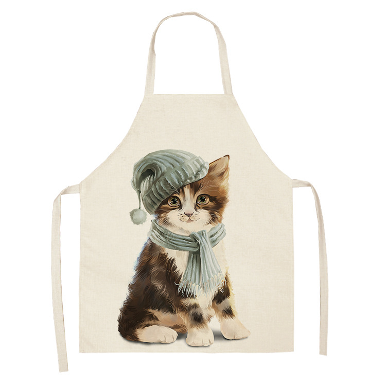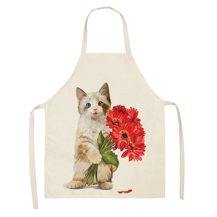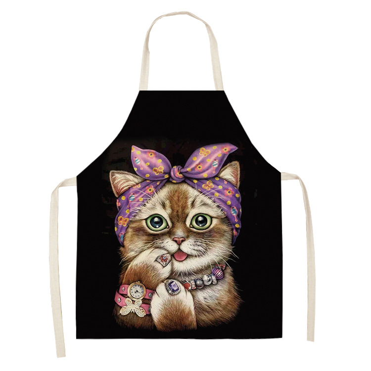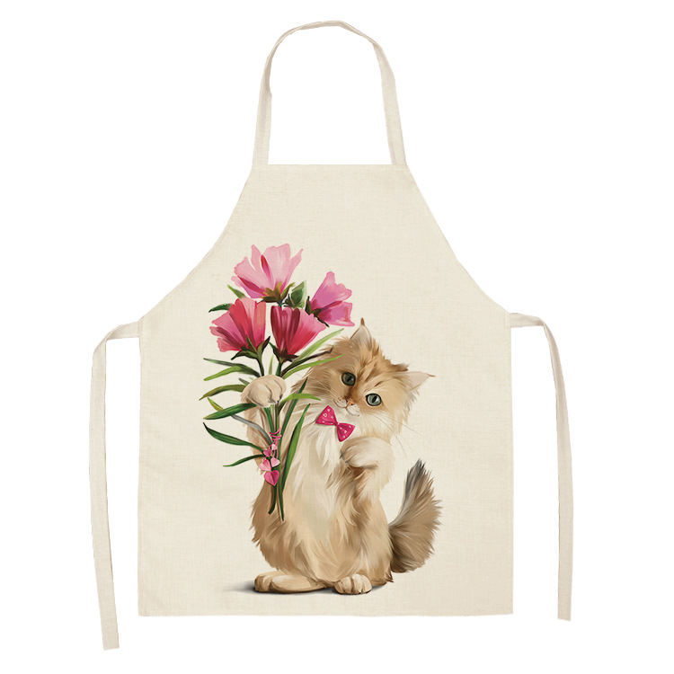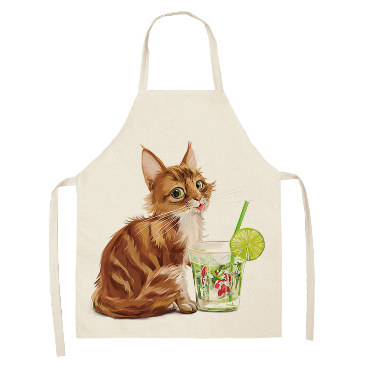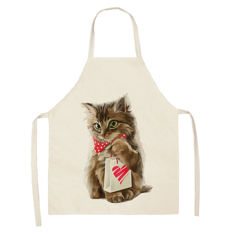 2025新款可爱卡通猫咪印花无袖围裙日用防污亲子无袖罩衣厂家直发