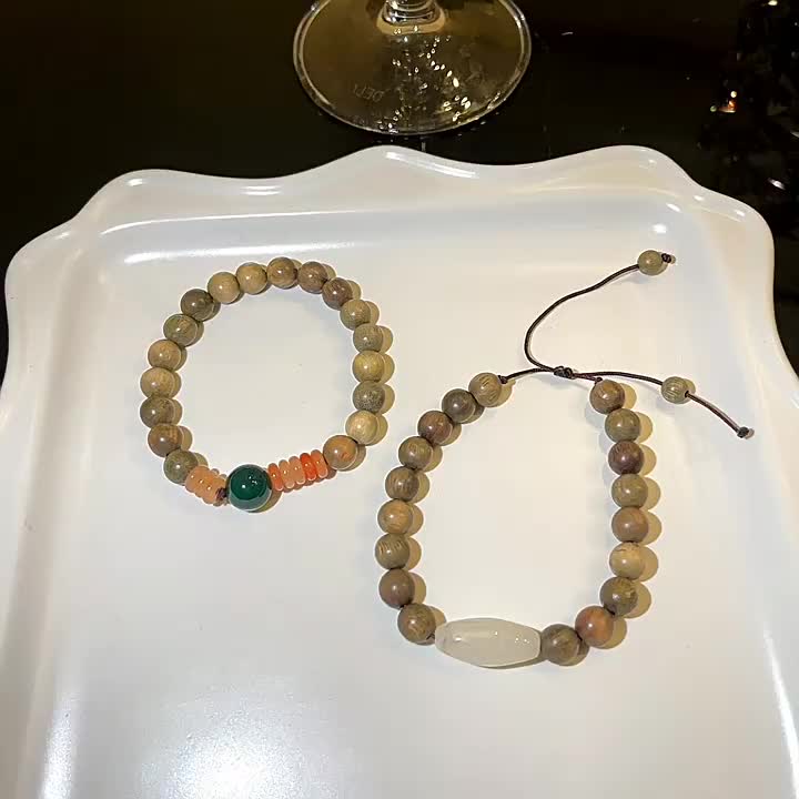饰品复古绿色香檀木串珠手链女轻奢小众情侣可调节抽拉式手串批发