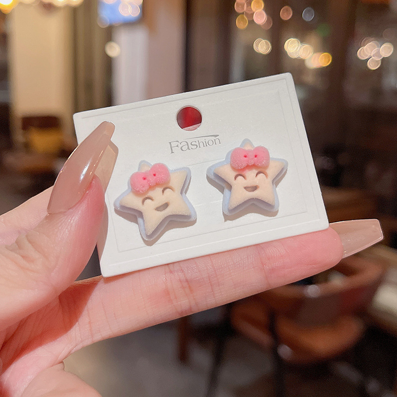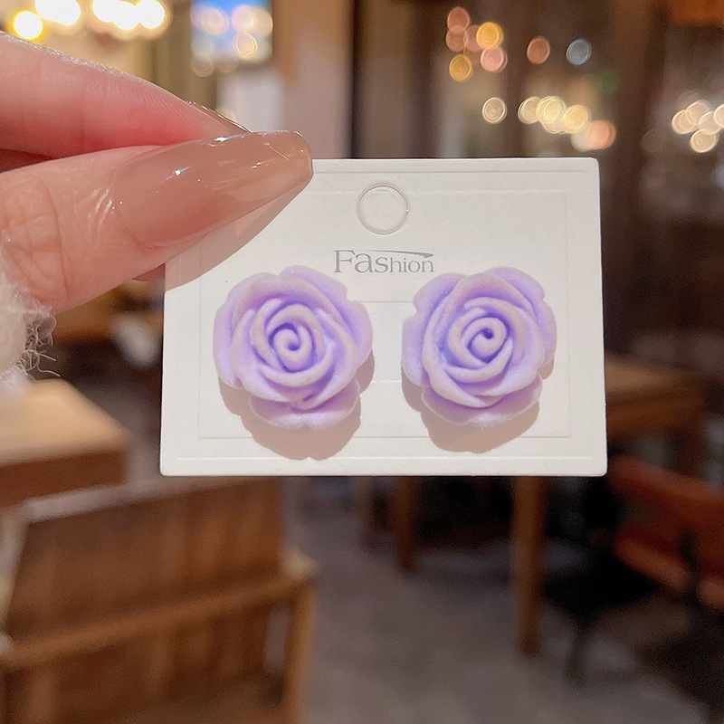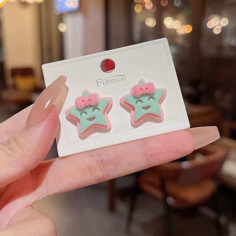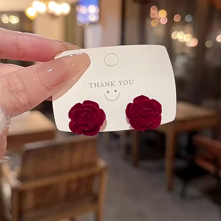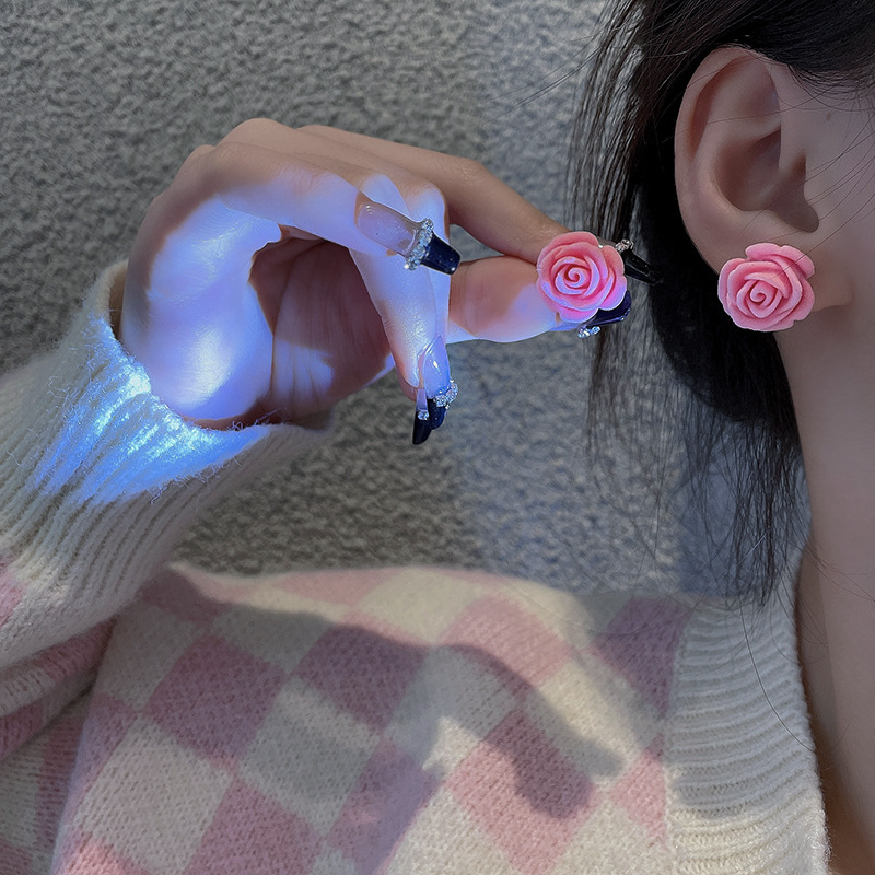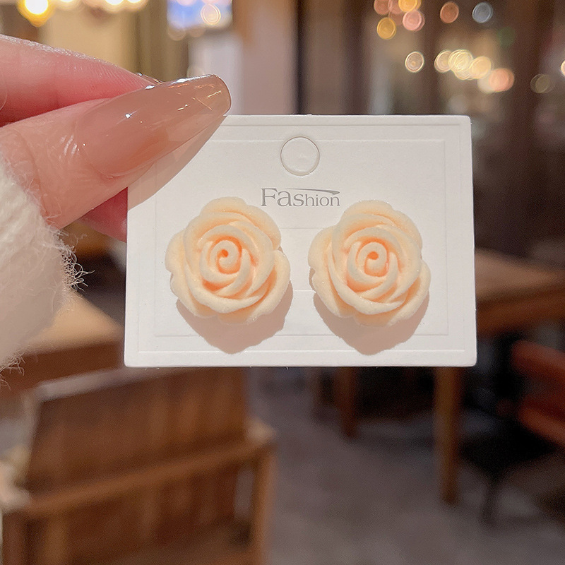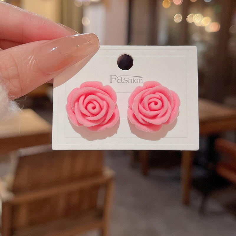 饰品批发秋冬植绒耳钉S925银针粉色可爱花朵耳环百搭气质毛球耳饰