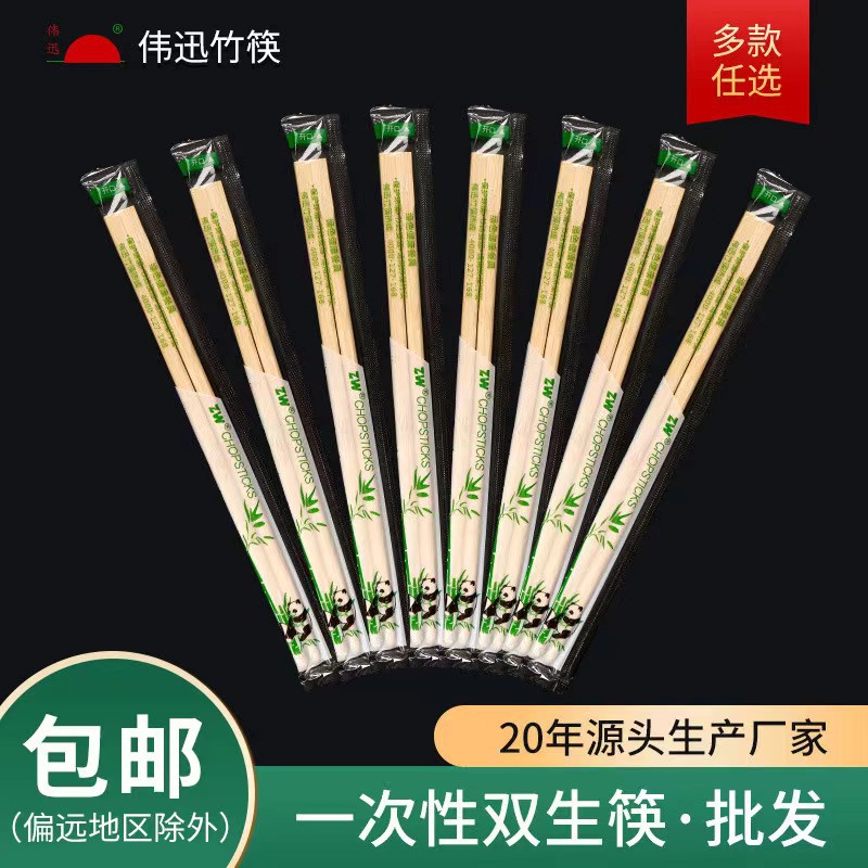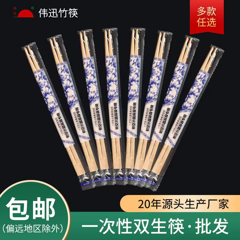 一次性筷子双生筷外卖筷子熊猫筷青花瓷筷透明膜筷子伟迅厂家批发