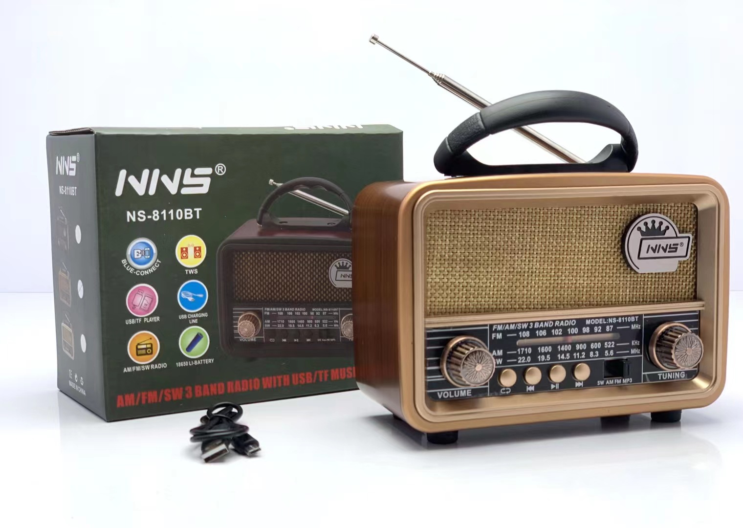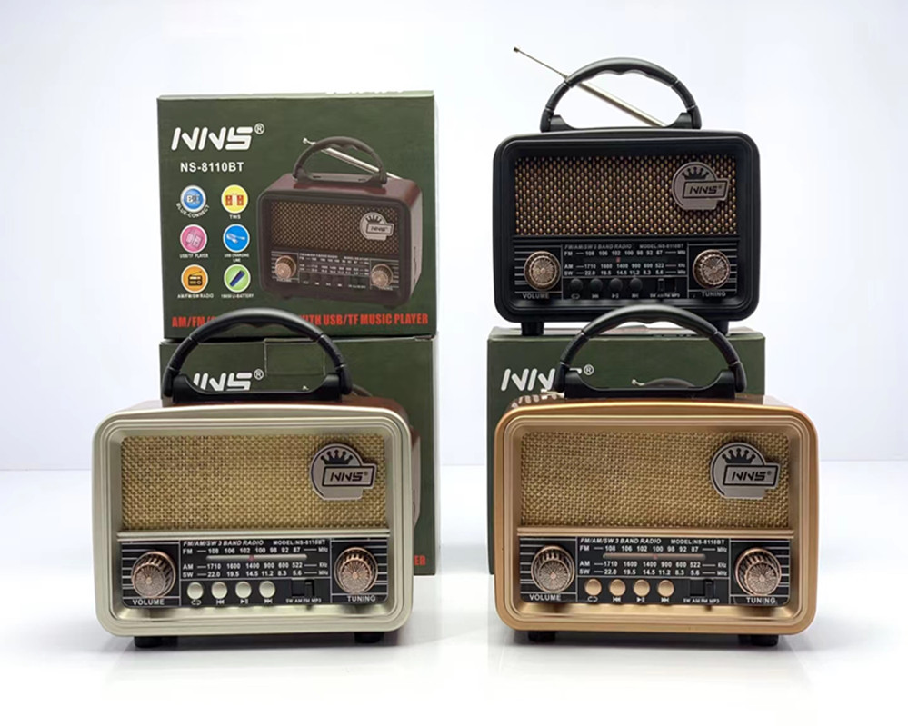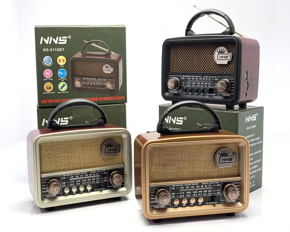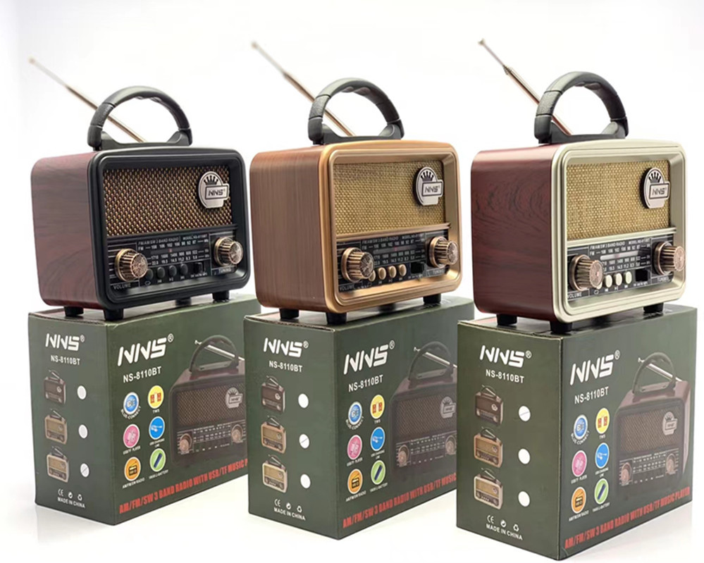 跨境NS8110木纹复古蓝牙音箱创意便携FM桌面小音响超重低音炮礼