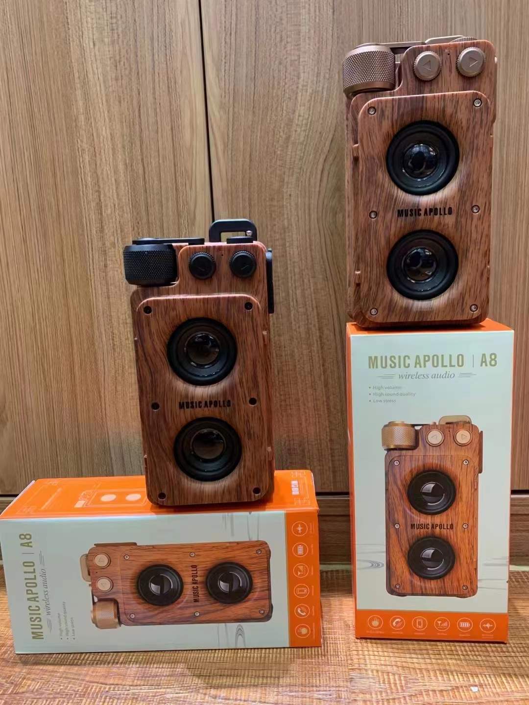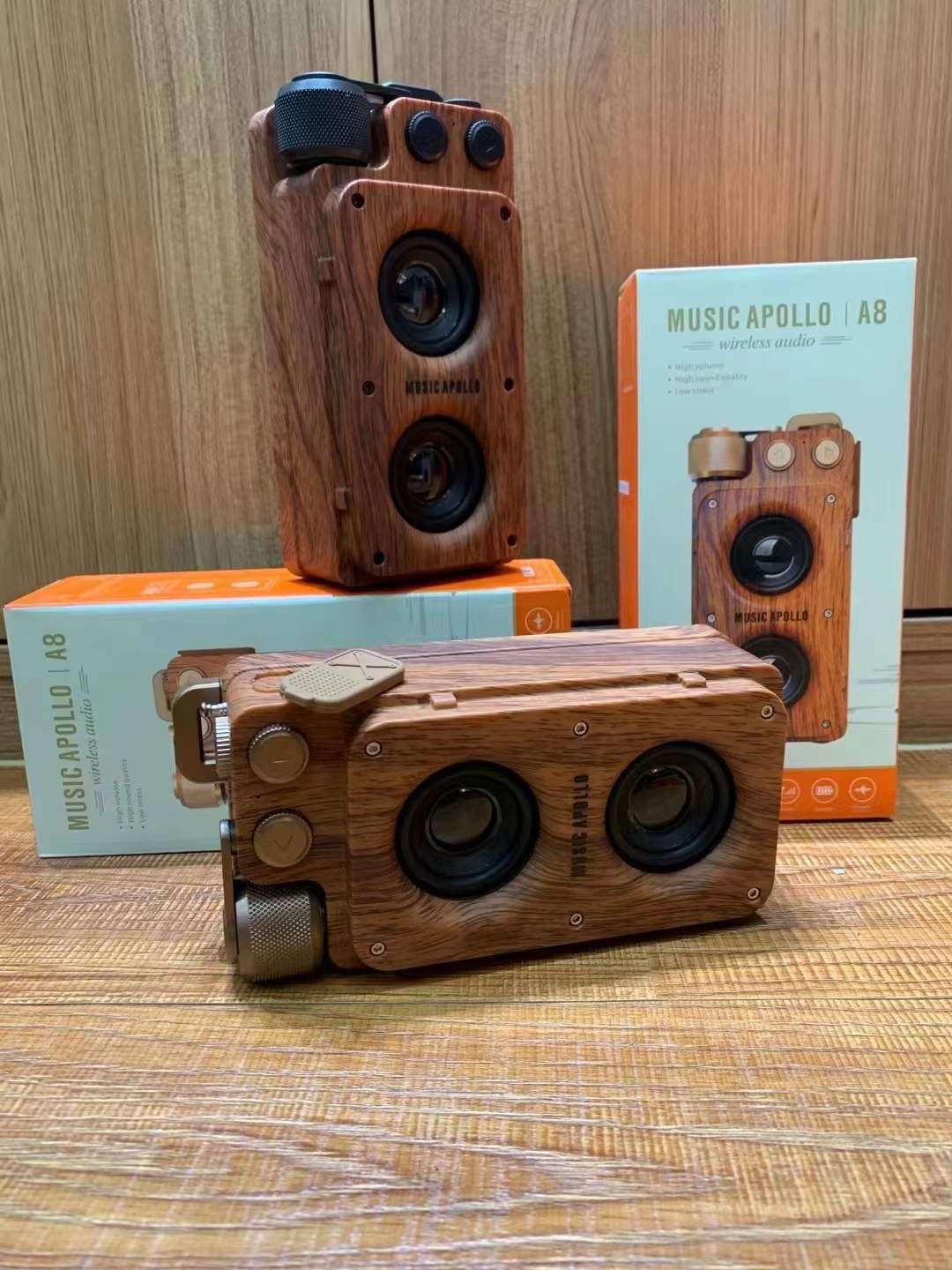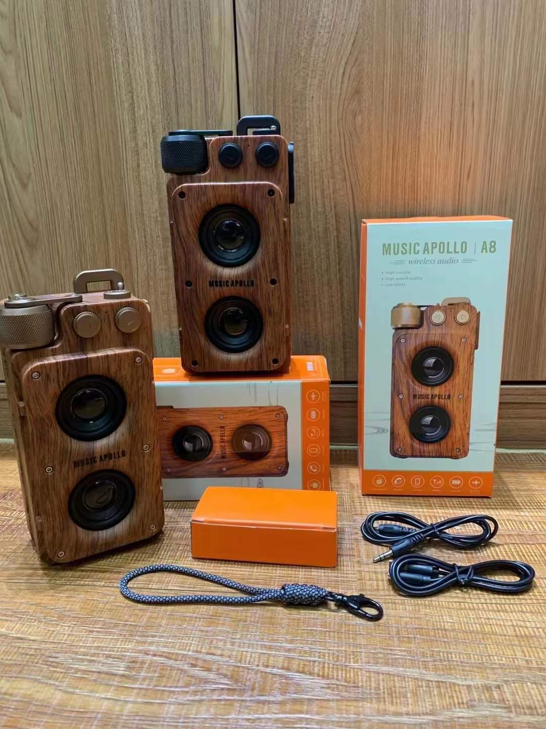 新款跨境电商A8复古蓝牙音响多功能无线双喇叭FM收音机木纹小音箱