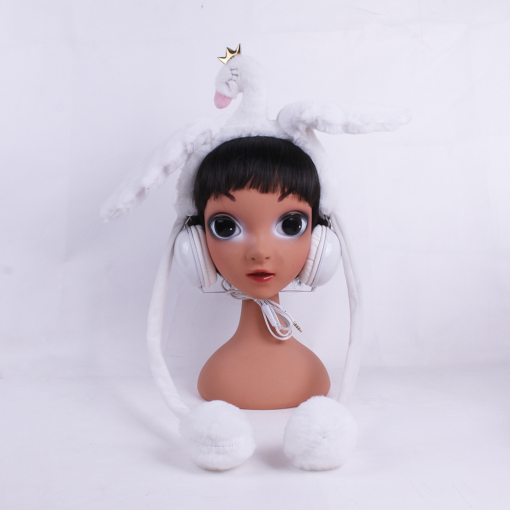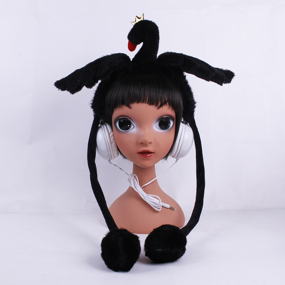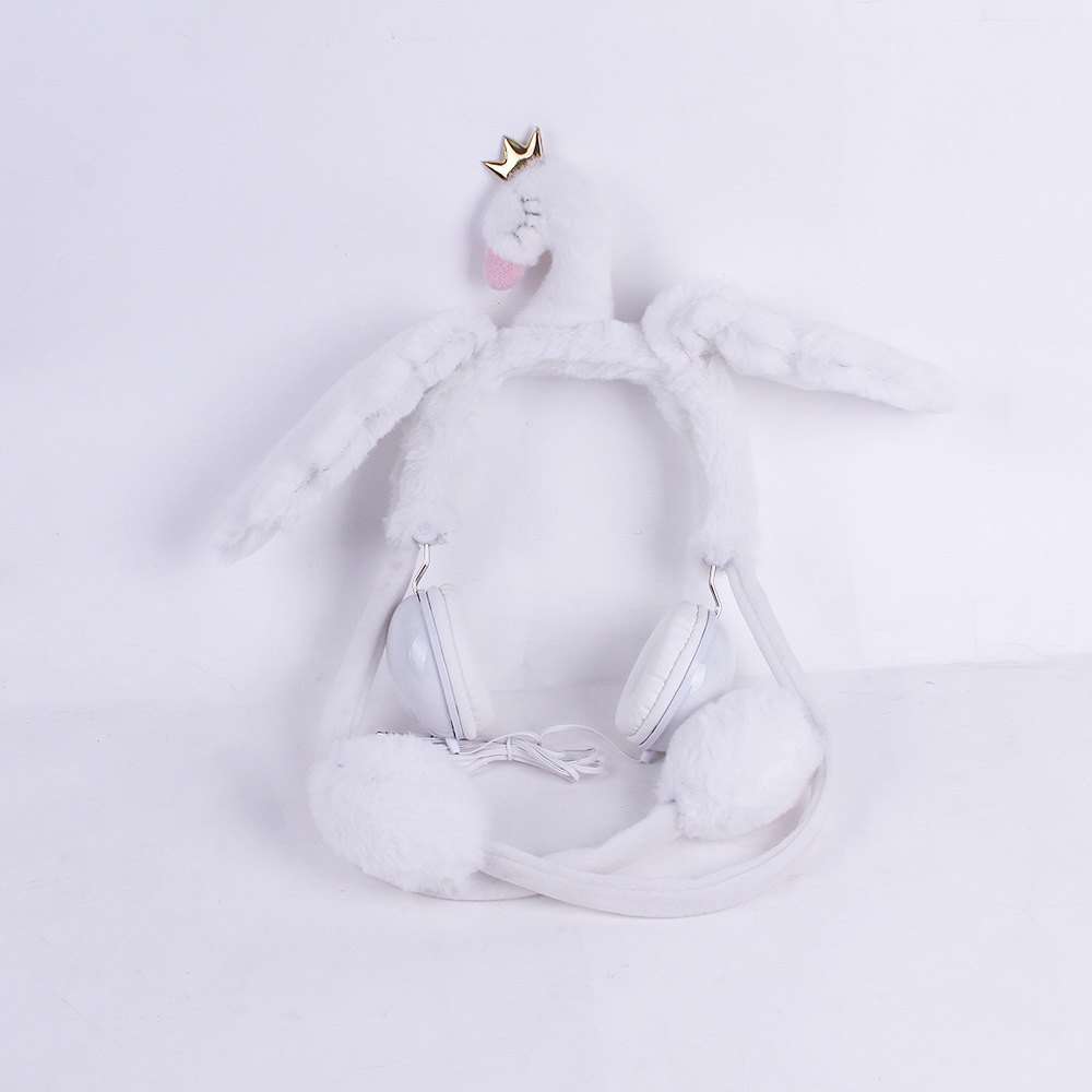 新皇冠天鹅耳机抖动可爱卖萌气囊会动网红头戴式发光耳机