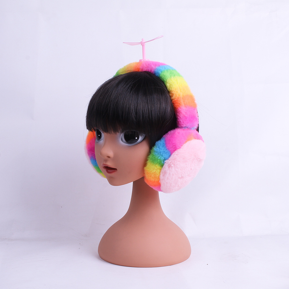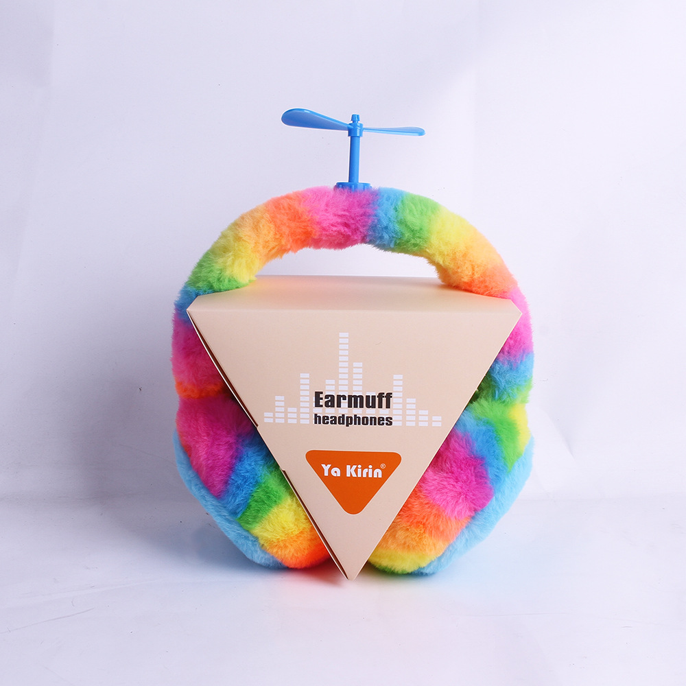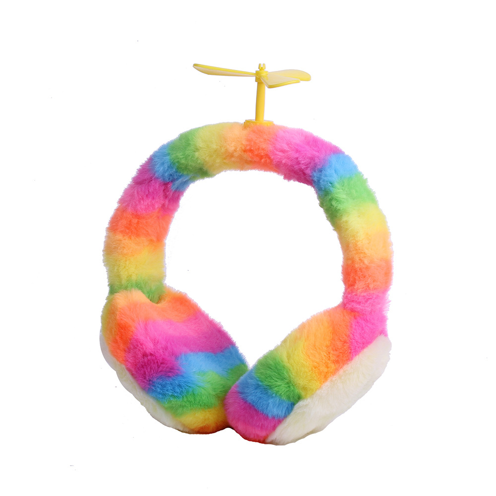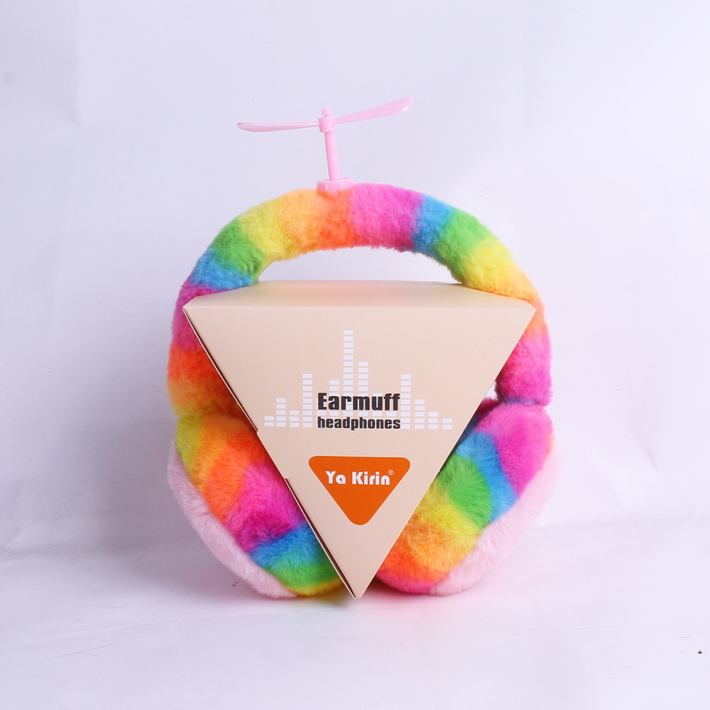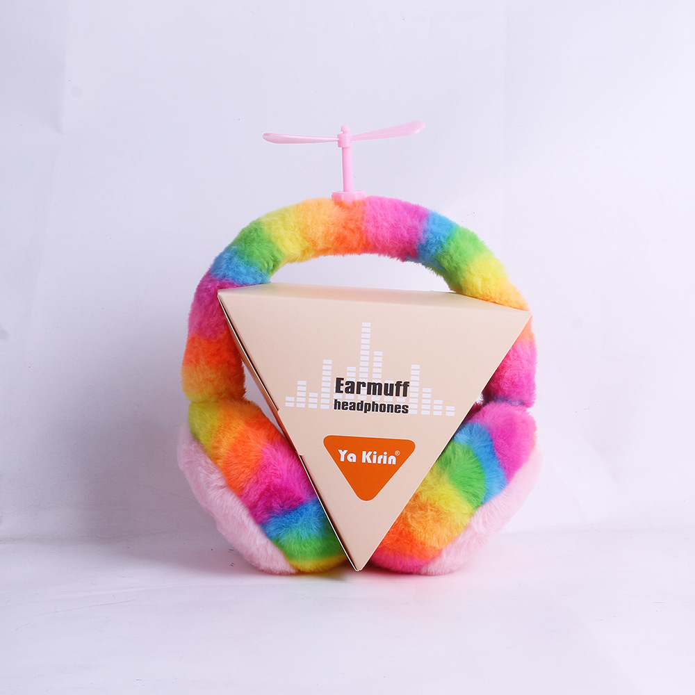 新款彩色礼品冬季竹蜻蜓毛绒保暖耳机头戴式插线手机耳机节日礼物